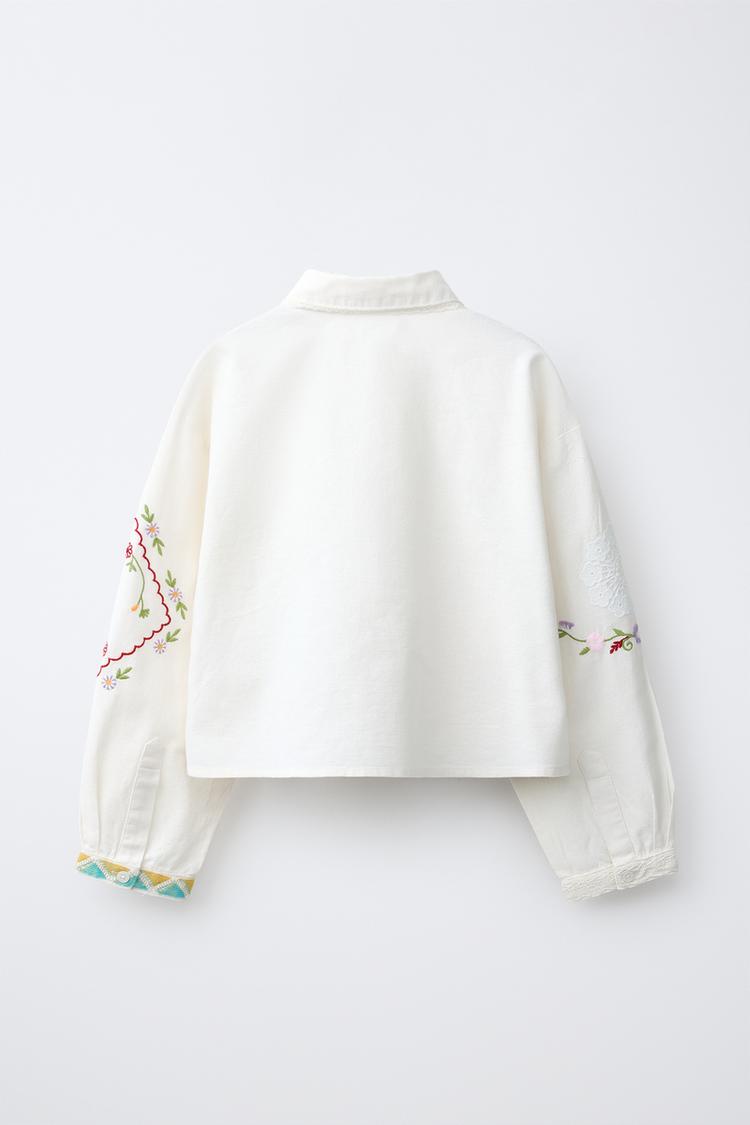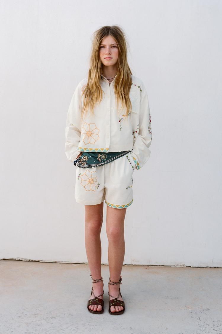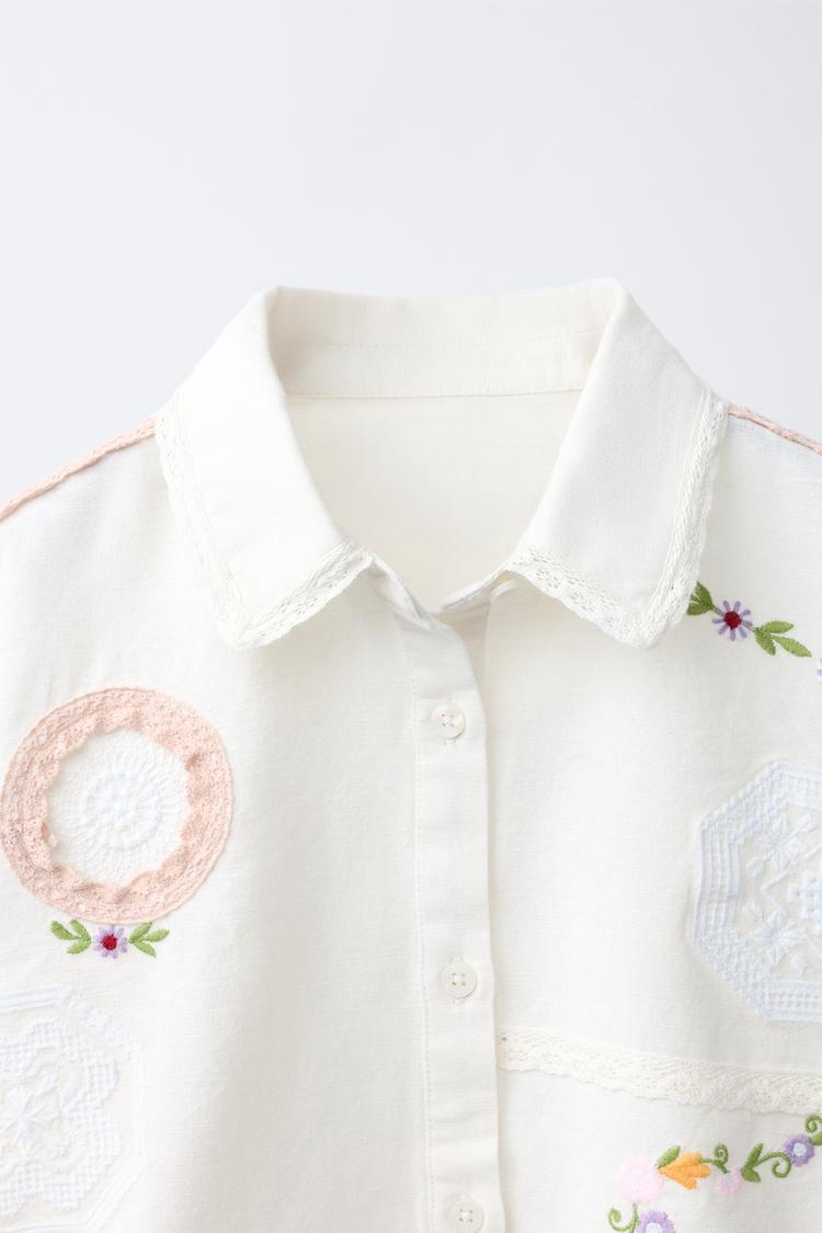 ZARA РУБАШКА ИЗ ХЛОПКА И ЛЬНА С ВЫШИВКОЙ, ЭКРЮ
