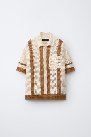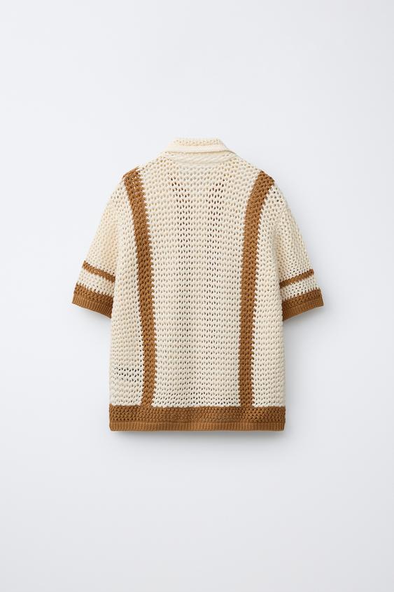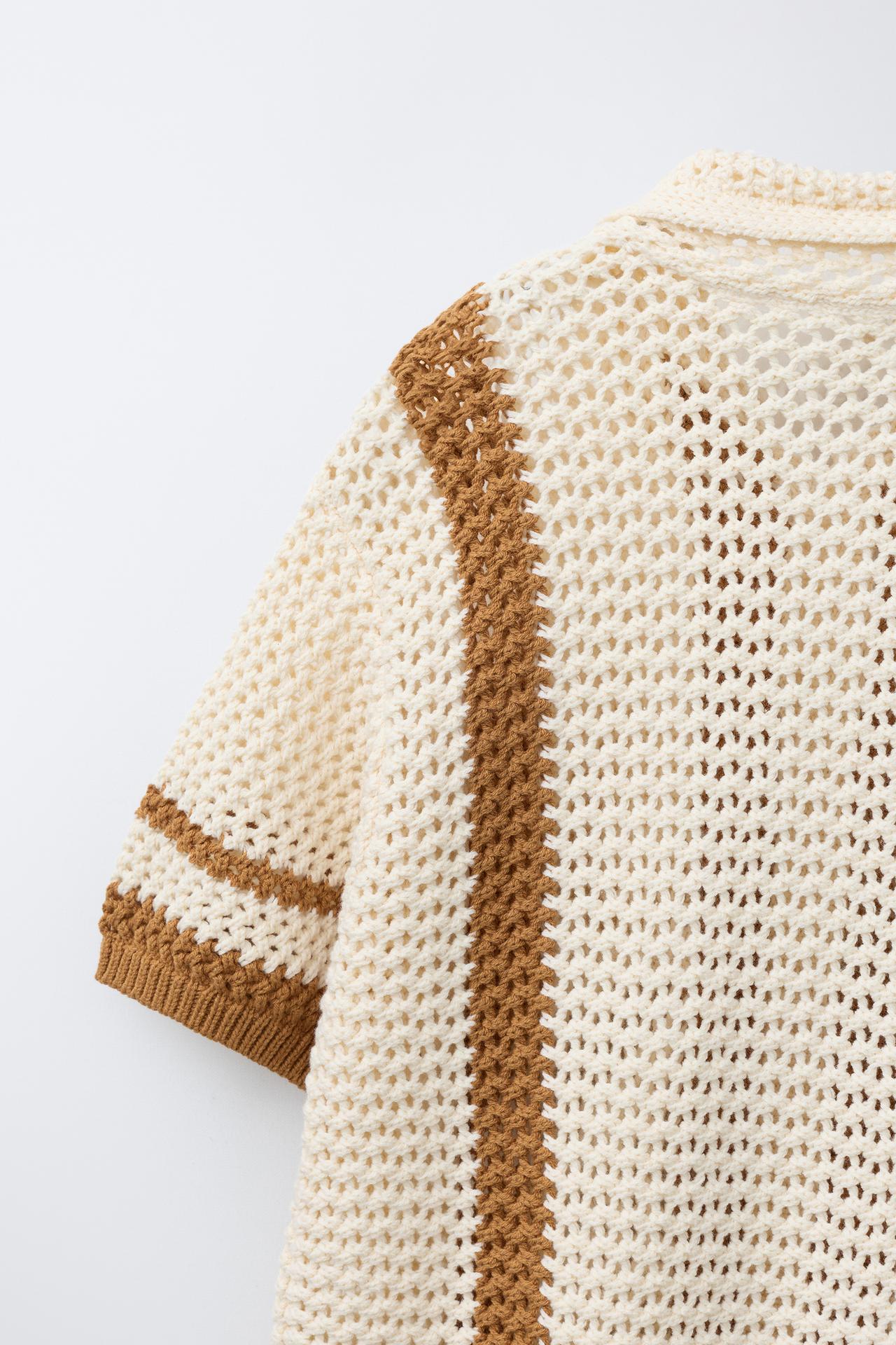 ZARA РУБАШКА ИЗ КРУЖЕВА КРОШЕ, ОХРА