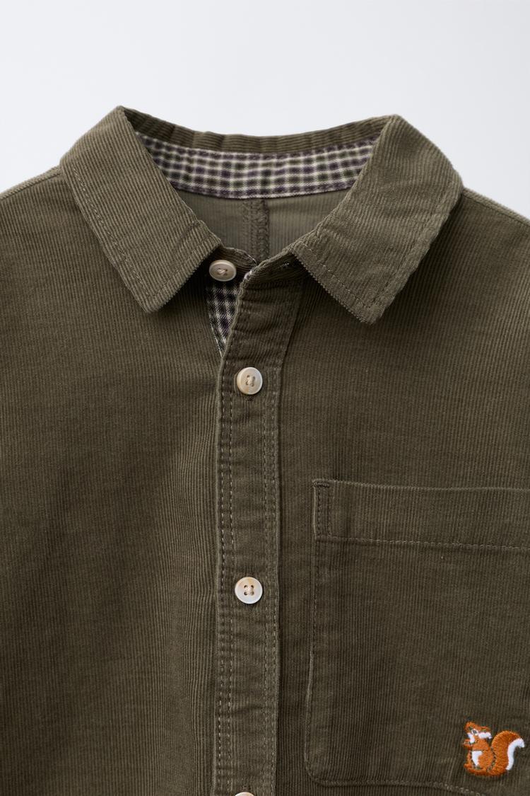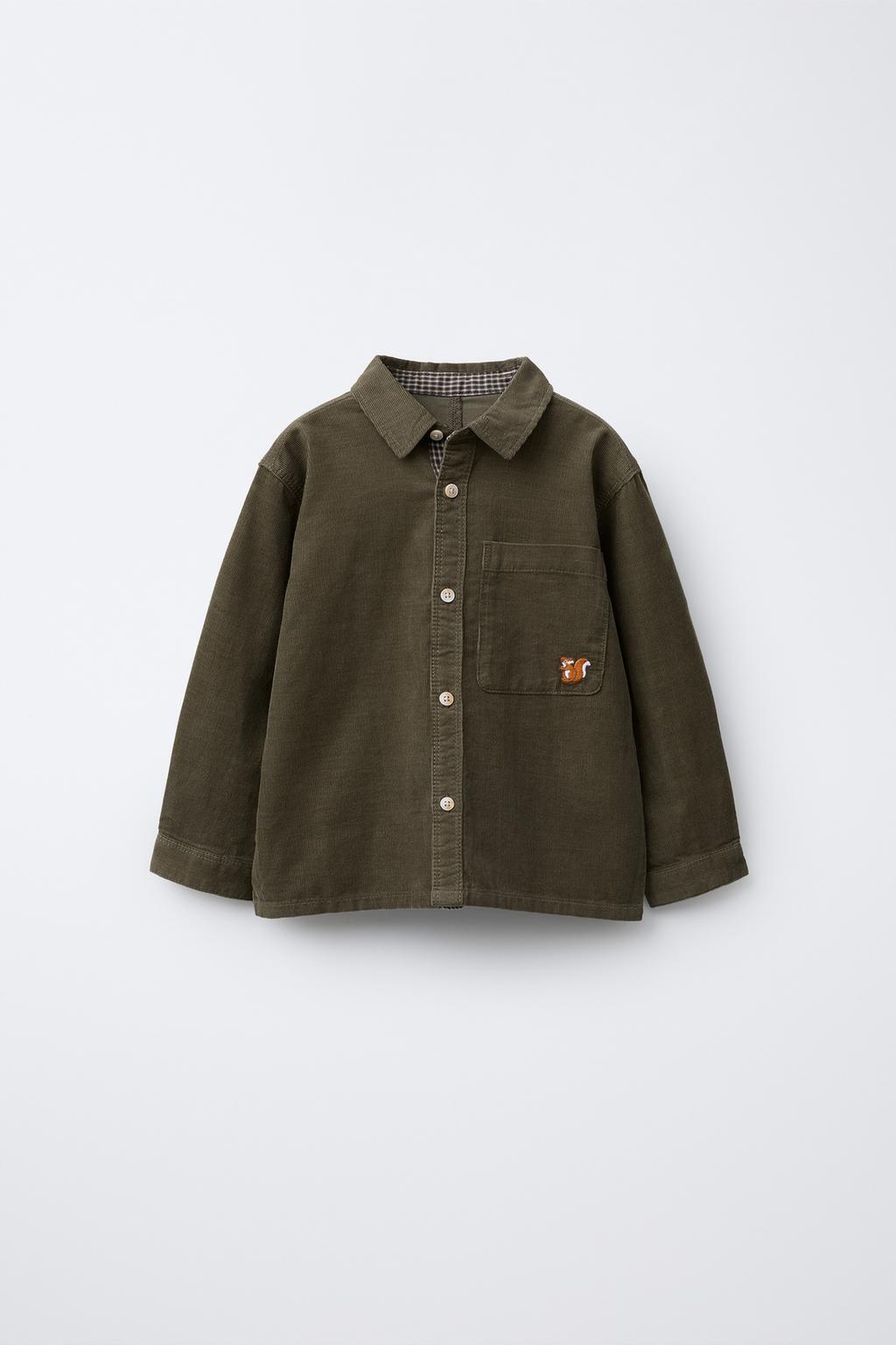 ZARA РУБАШКА ИЗ МИКРОВЕЛЬВЕТА С КАРМАНАМИ, ЗЕЛЕНЫЙ