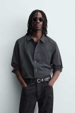 ZARА РУБАШКА ИЗ МЯГКОГО ДЕНИМА, НЕФТЯНОЙ