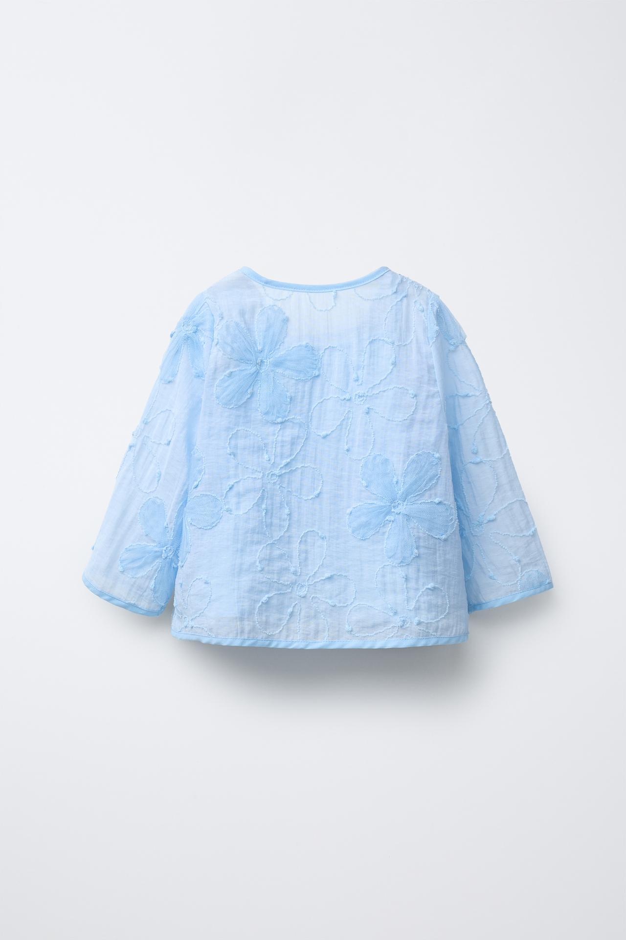 ZARA РУБАШКА ИЗ ОРГАНЗЫ С ЦВЕТОЧНЫМ ПРИНТОМ, НЕБЕСНО-ГОЛУБОЙ