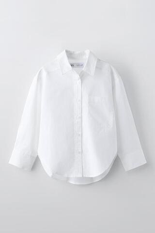 ZARA РУБАШКА ИЗ ПОПЛИНА, БЕЛЫЙ