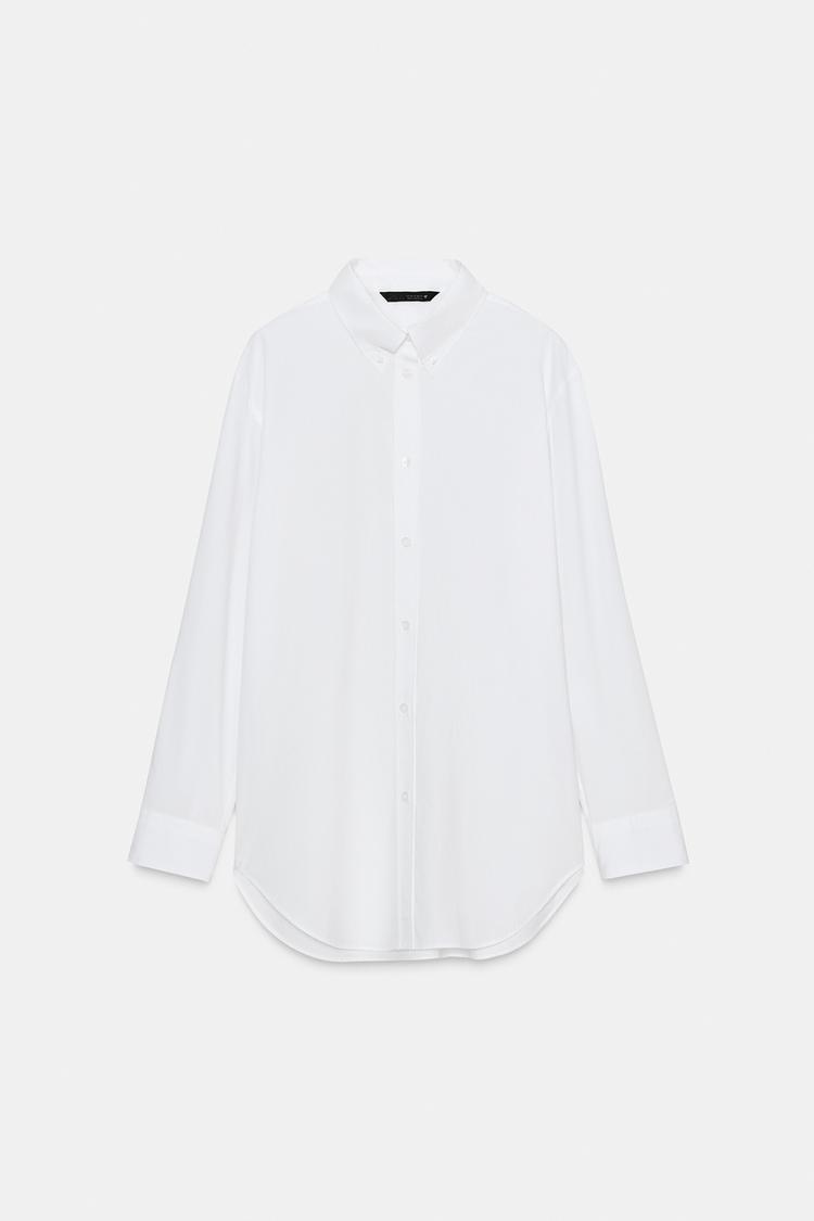 ZARA РУБАШКА ИЗ ПОПЛИНА, БЕЛЫЙ