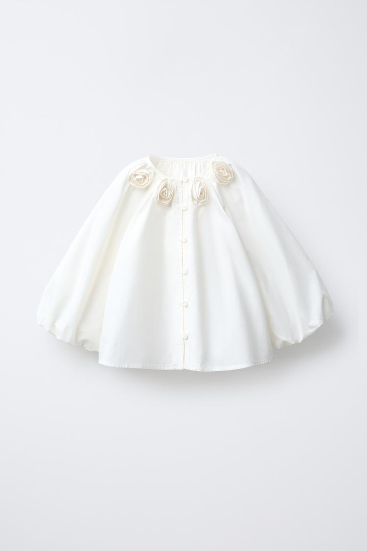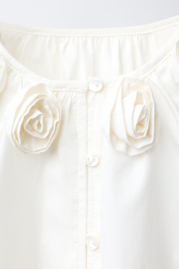 ZARA РУБАШКА ИЗ ПОПЛИНА С 3D-ЦВЕТАМИ, ЖЕЛТОВАТО-БЕЛЫЙ