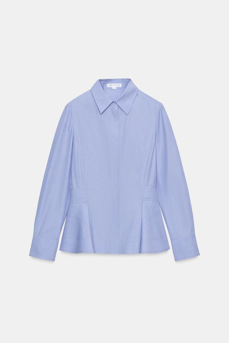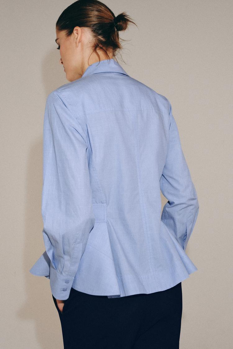 ZARA РУБАШКА ИЗ ПОПЛИНА С БАСКОЙ — ZW COLLECTION, СИНИЙ МЕЛАНЖ