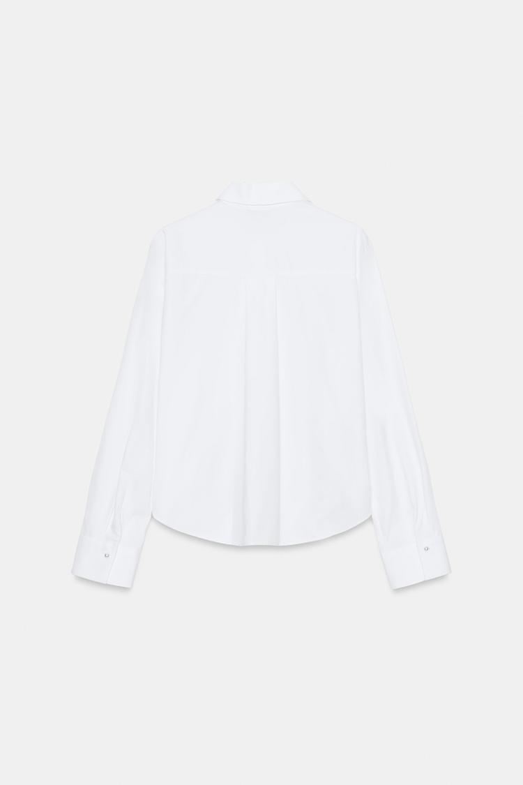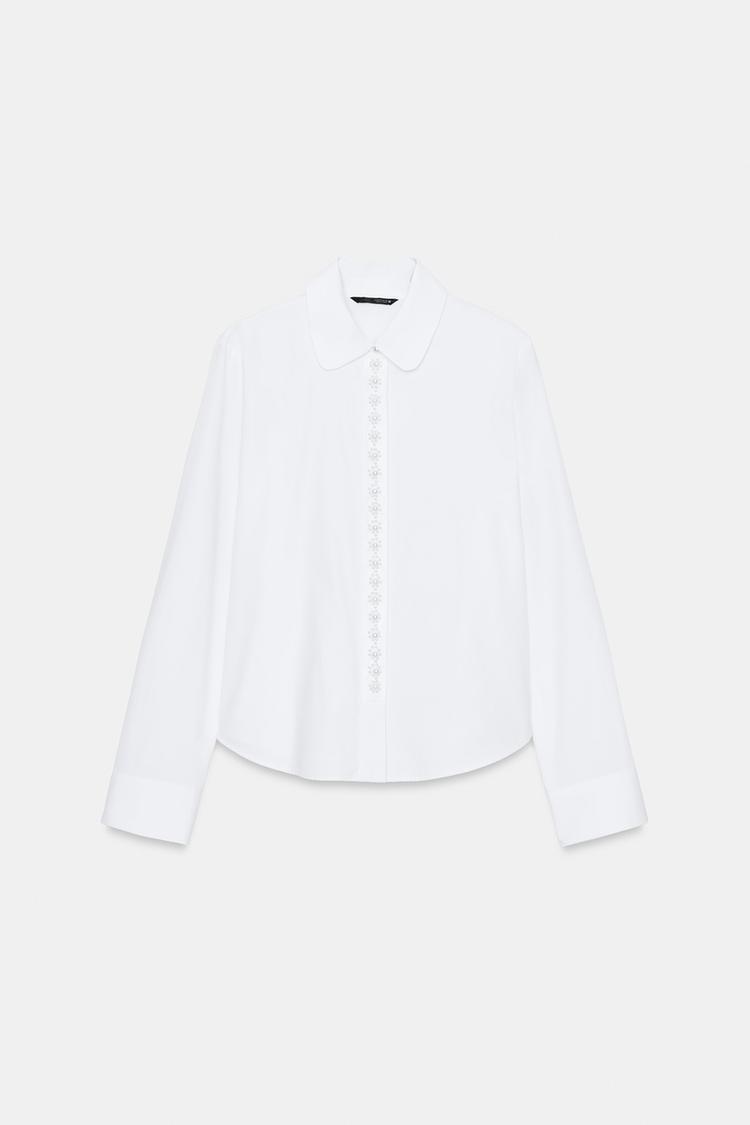 ZARA РУБАШКА ИЗ ПОПЛИНА С БУСИНАМИ, БЕЛЫЙ