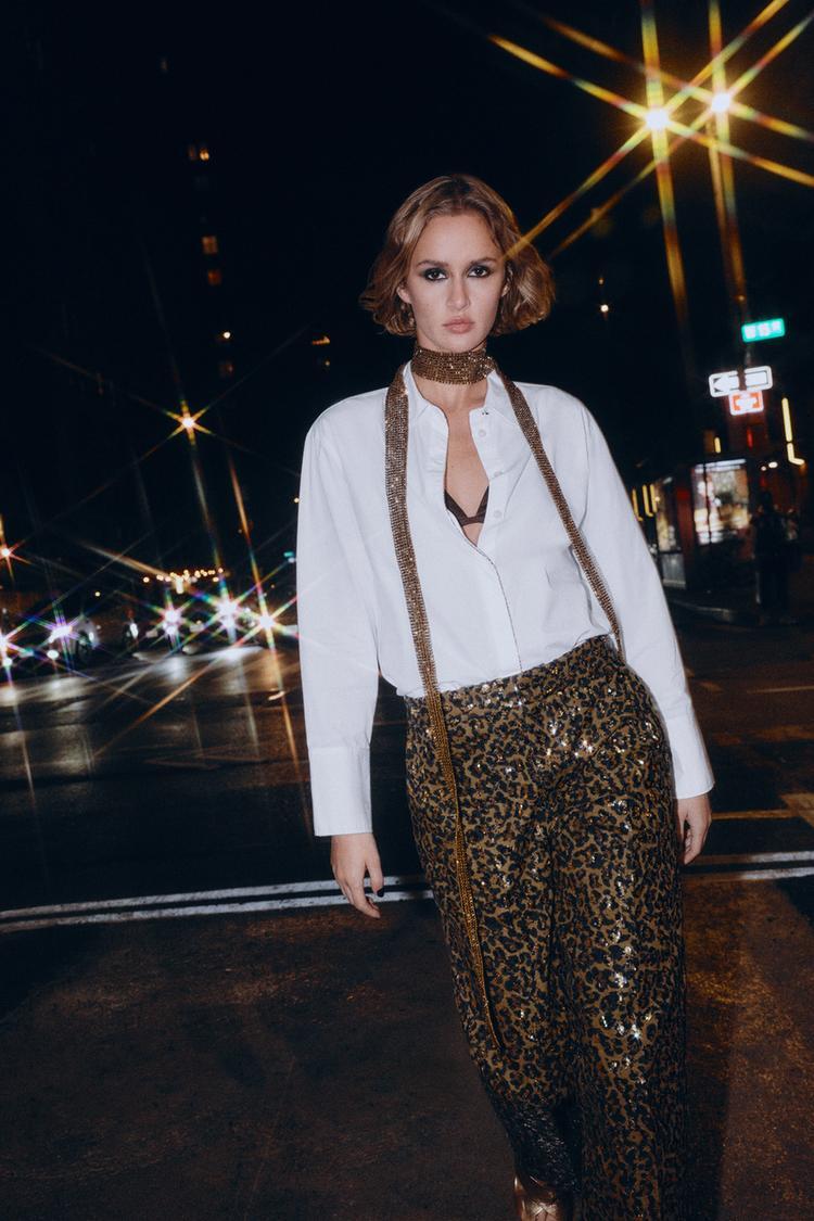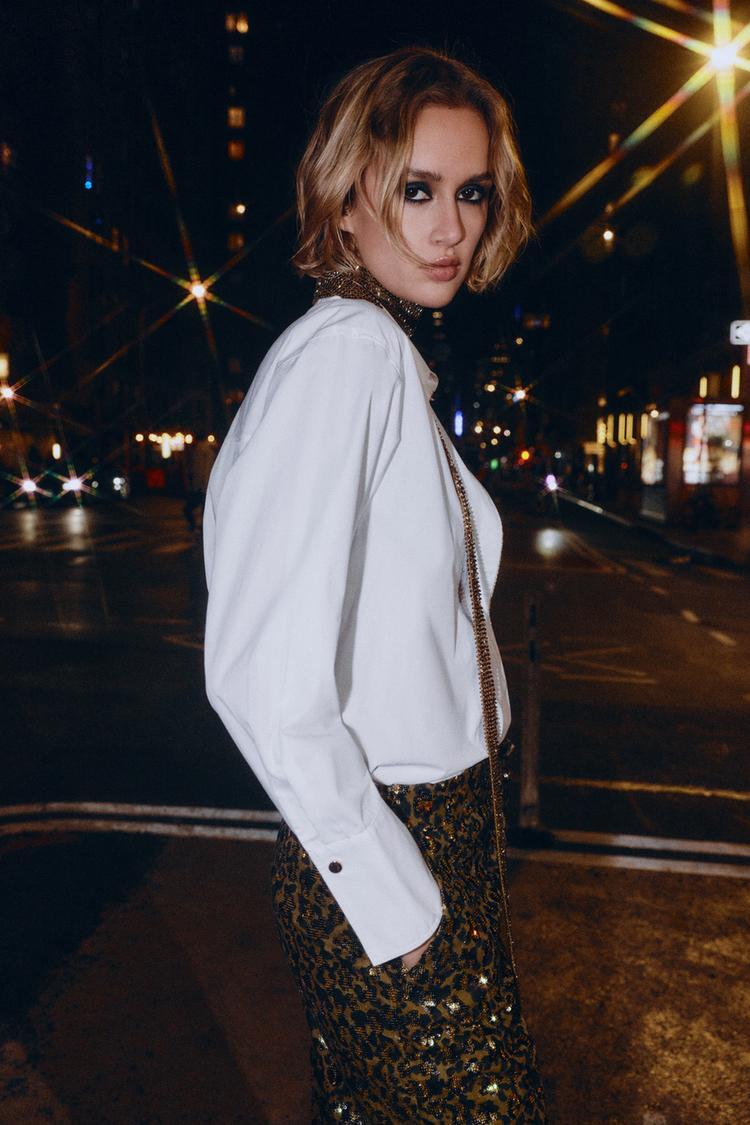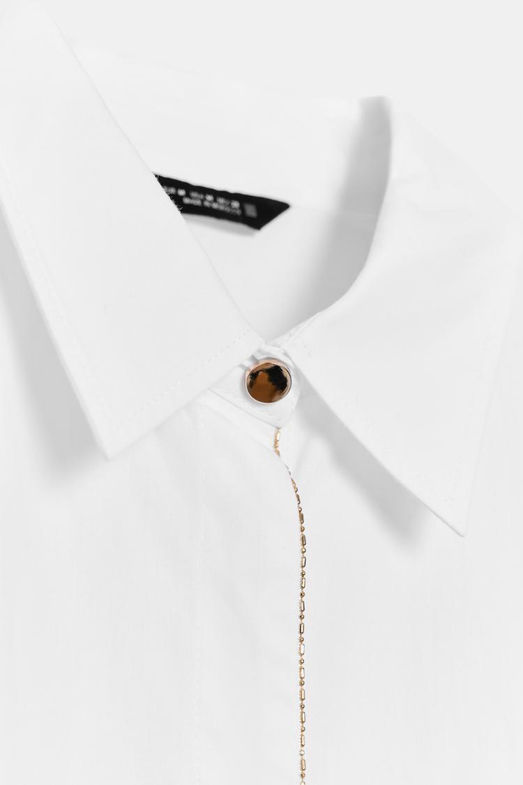 ZARA РУБАШКА ИЗ ПОПЛИНА С БУСИНАМИ НА ПЛАНКЕ, БЕЛЫЙ