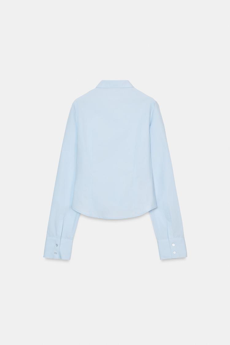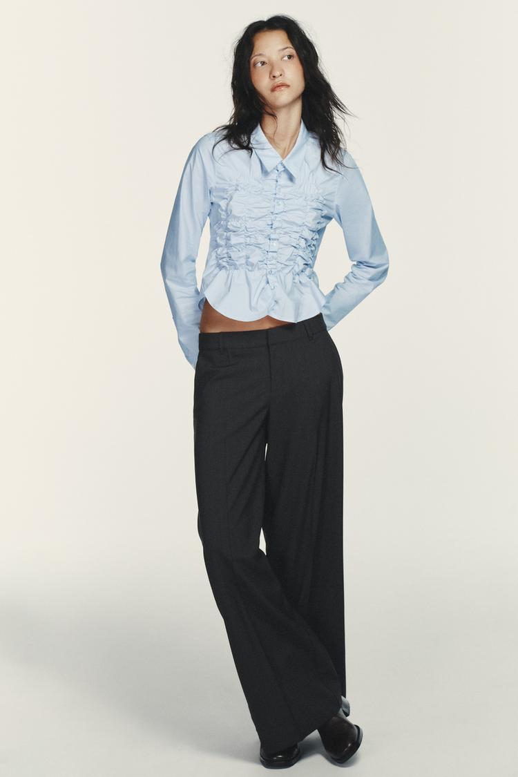 ZARA РУБАШКА ИЗ ПОПЛИНА С ЭЛАСТИЧНЫМИ СБОРКАМИ, НЕБЕСНО-ГОЛУБОЙ