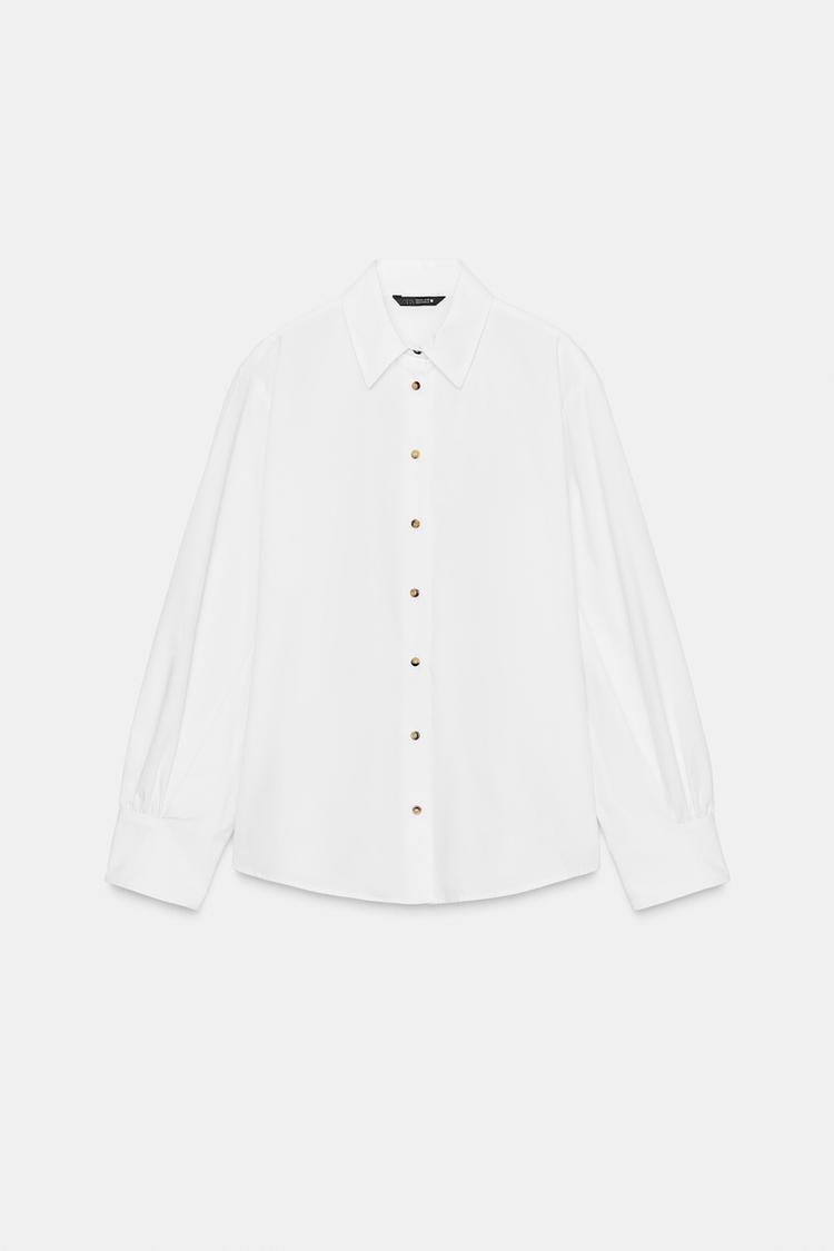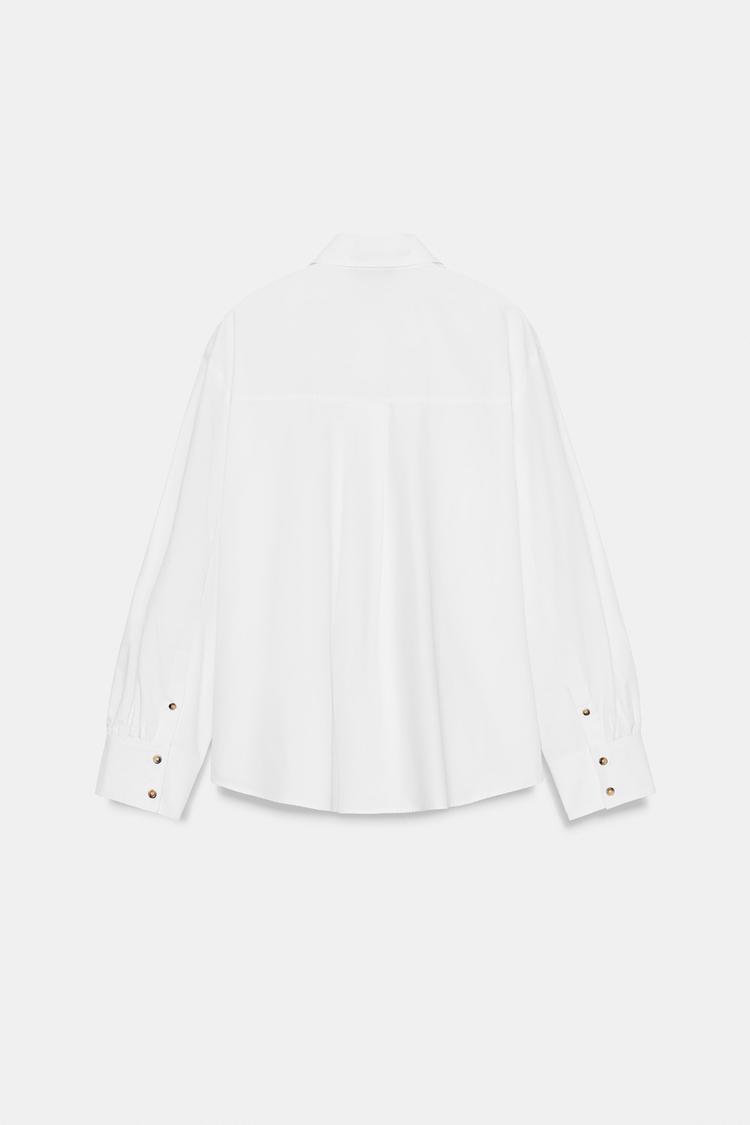 ZARA РУБАШКА ИЗ ПОПЛИНА С КОНТРАСТНЫМИ ПУГОВИЦАМИ, БЕЛЫЙ