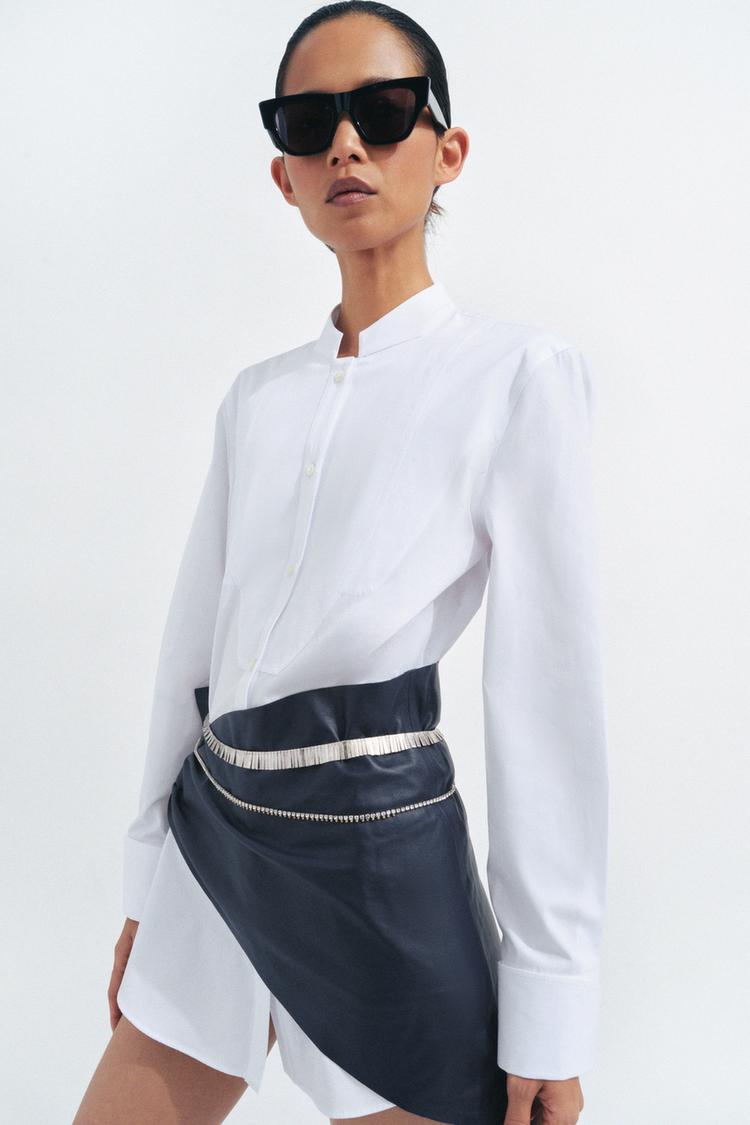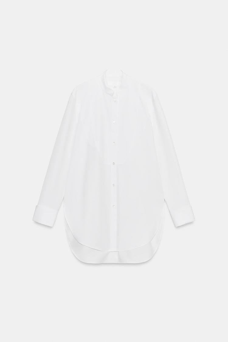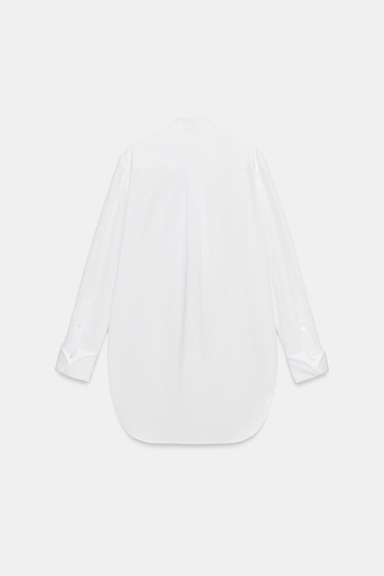 ZARA РУБАШКА ИЗ ПОПЛИНА С НАГРУДНОЙ ПЛАНКОЙ — ZW COLLECTION, БЕЛЫЙ