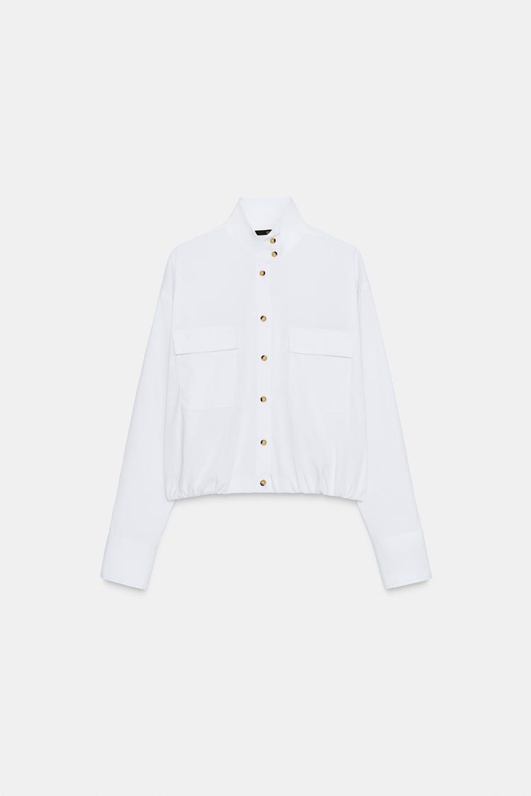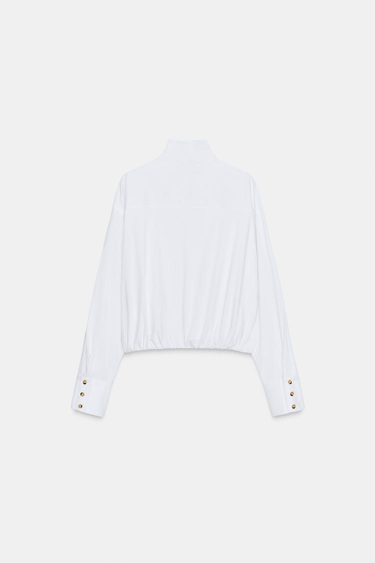 ZARA РУБАШКА ИЗ ПОПЛИНА С ОБЪЕМНЫМИ РУКАВАМИ, БЕЛЫЙ
