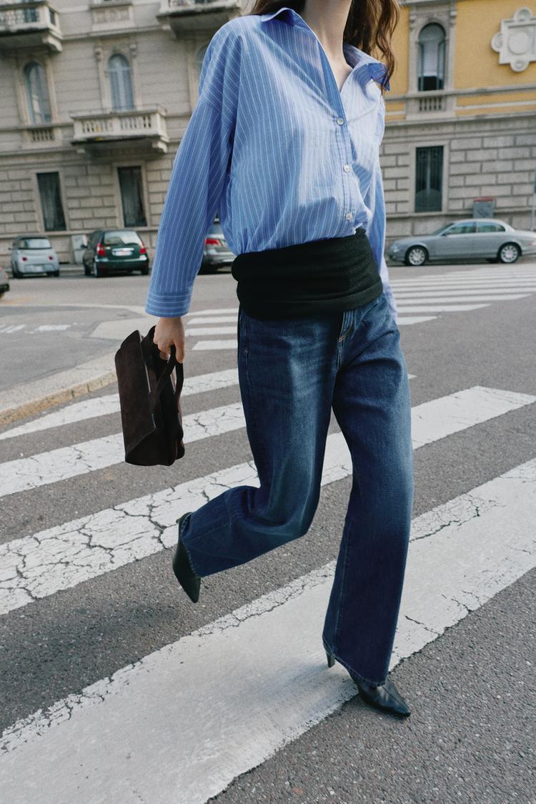ZARA РУБАШКА ИЗ ПОПЛИНА С ПУГОВИЦАМИ, ЭКРЮ/КРАСНЫЙ