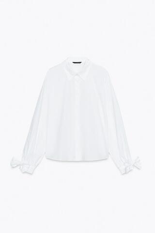 ZARA РУБАШКА ИЗ ПОПЛИНА С ЗАВЯЗКАМИ, БЕЛЫЙ