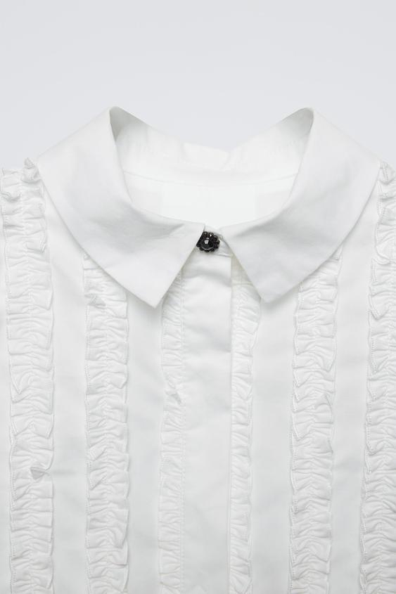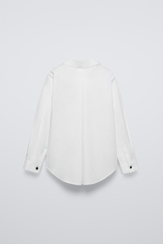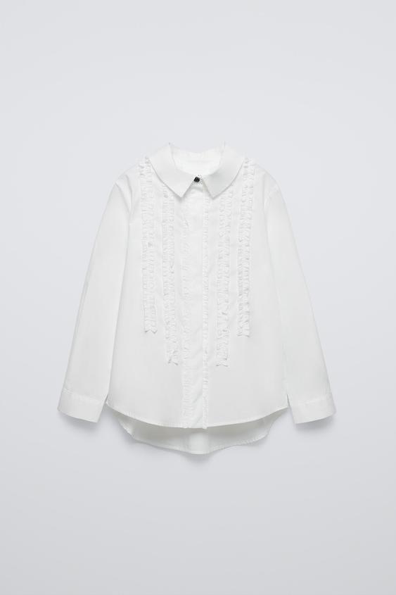 ZARA РУБАШКА ИЗ ПОПЛИНА С ЖАБО, БЕЛЫЙ