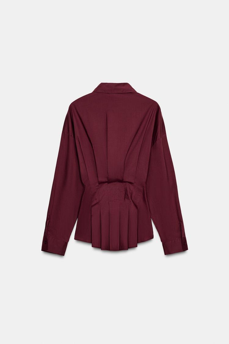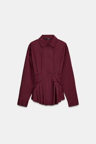 ZARA РУБАШКА ИЗ ПОПЛИНА СО СКЛАДКАМИ, БУРГУНДИ