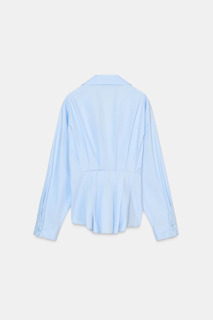 ZARA РУБАШКА ИЗ ПОПЛИНА СО СКЛАДКАМИ, ГОЛУБОЙ