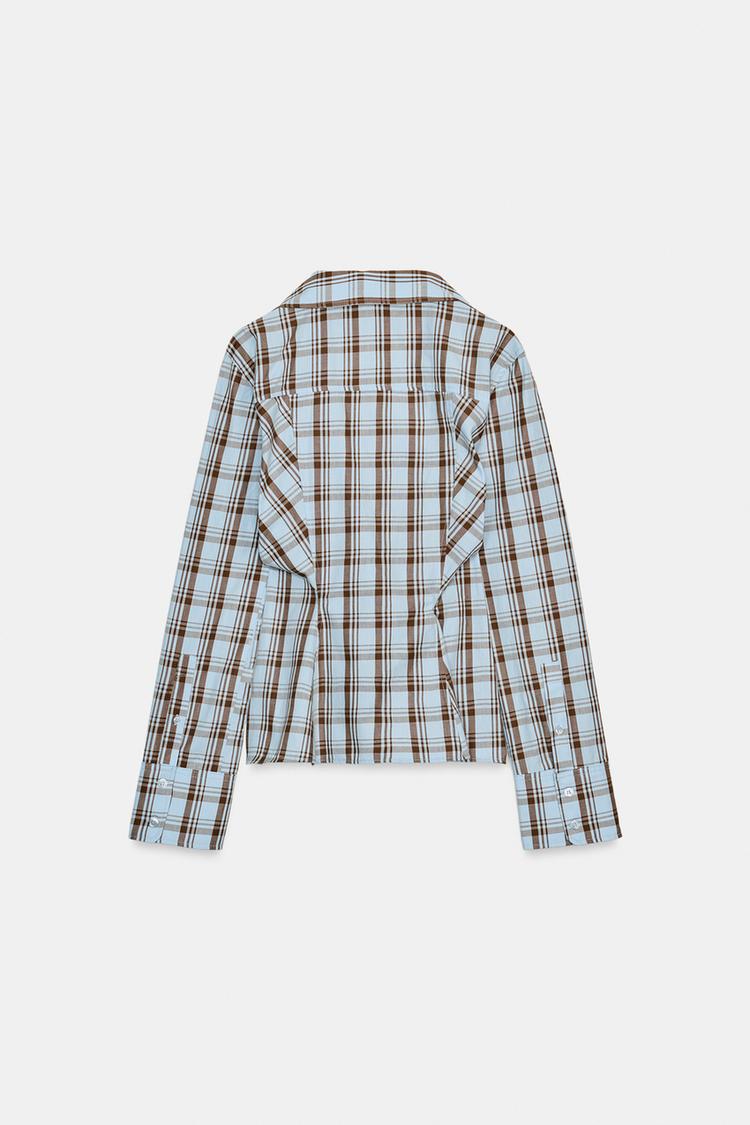 ZARA РУБАШКА ИЗ ПОПЛИНА В КЛЕТКУ С ЗАПАХОМ, КОРИЧНЕВО-СИНИЙ