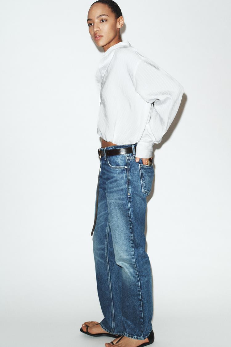 ZARA РУБАШКА ИЗ ПОПЛИНА В ПОЛОСКУ С РУКАВАМИ-БУФФ, БЕЛЫЙ