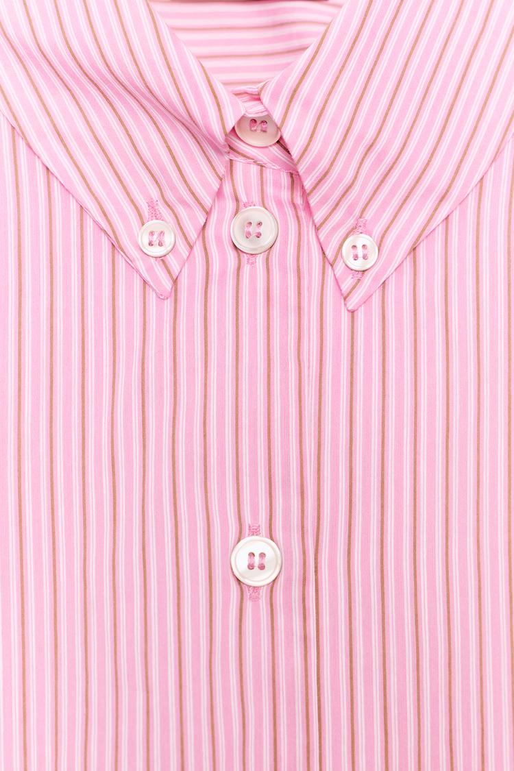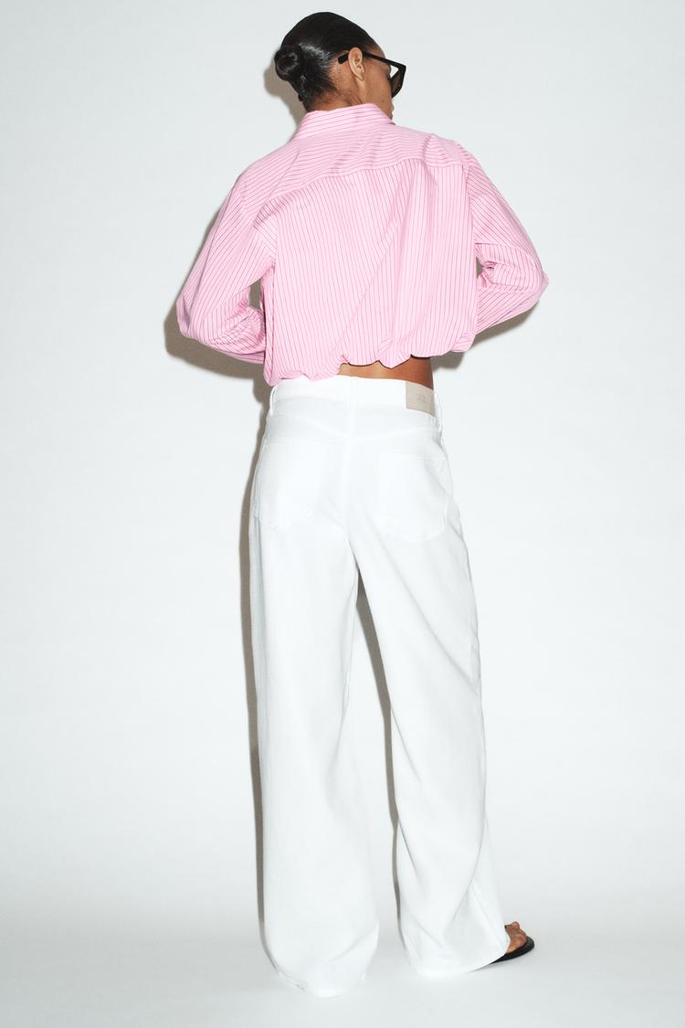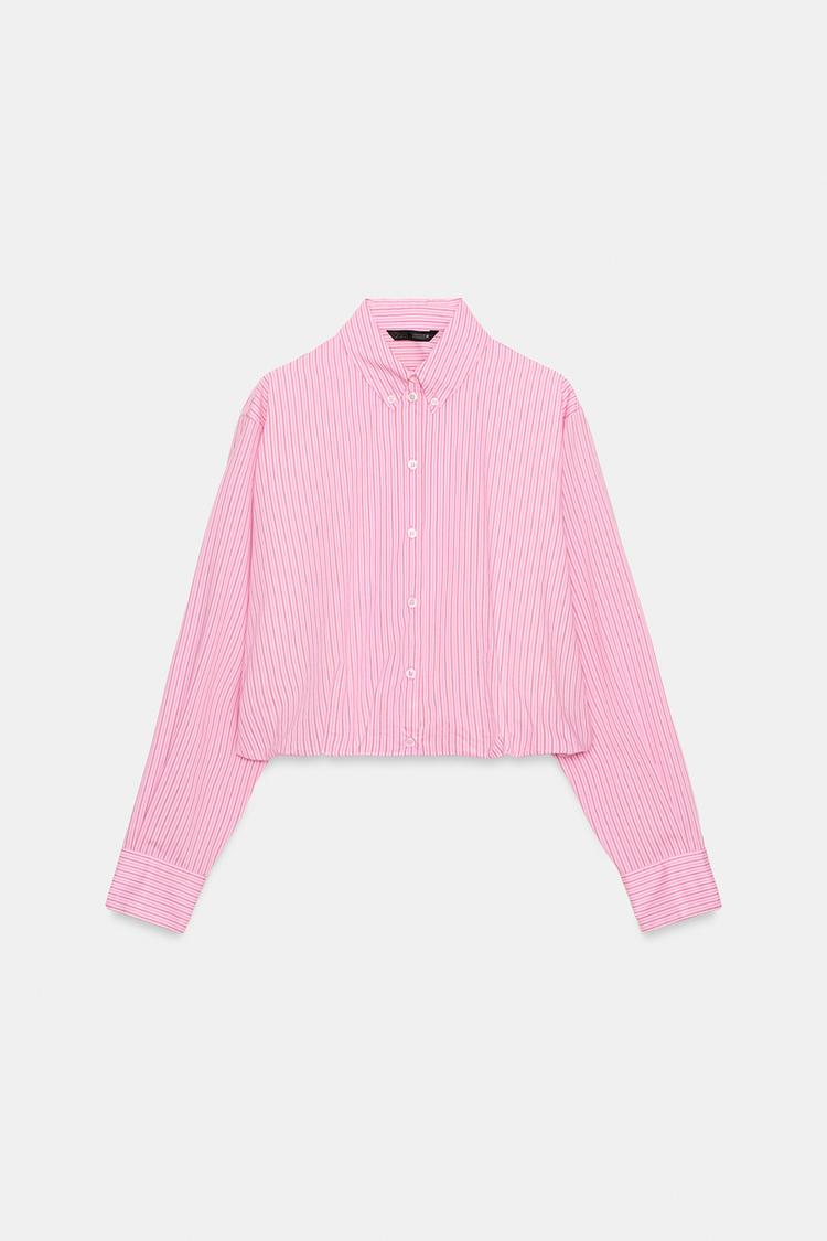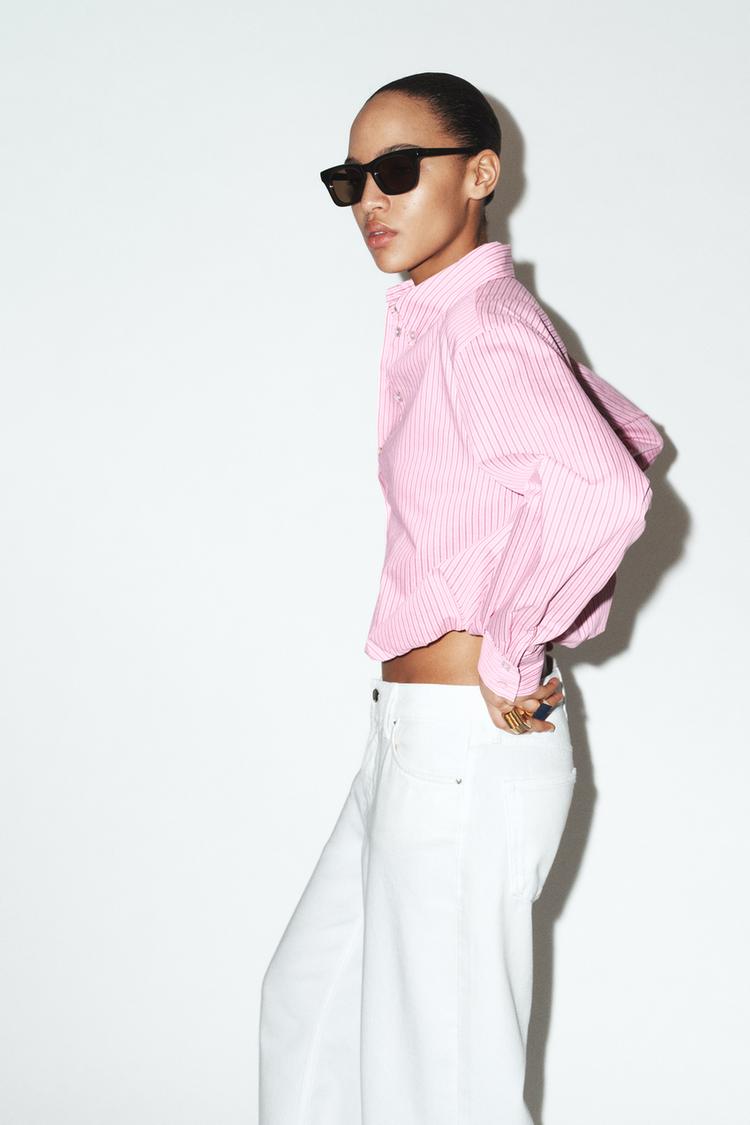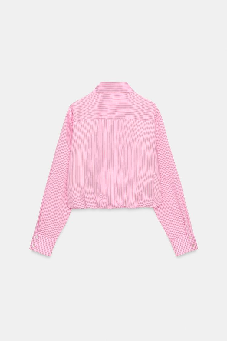 ZARA РУБАШКА ИЗ ПОПЛИНА В ПОЛОСКУ С РУКАВАМИ-БУФФ, РОЗОВЫЙ/БЕЛЫЙ