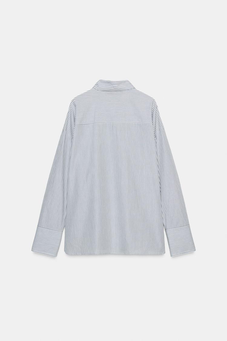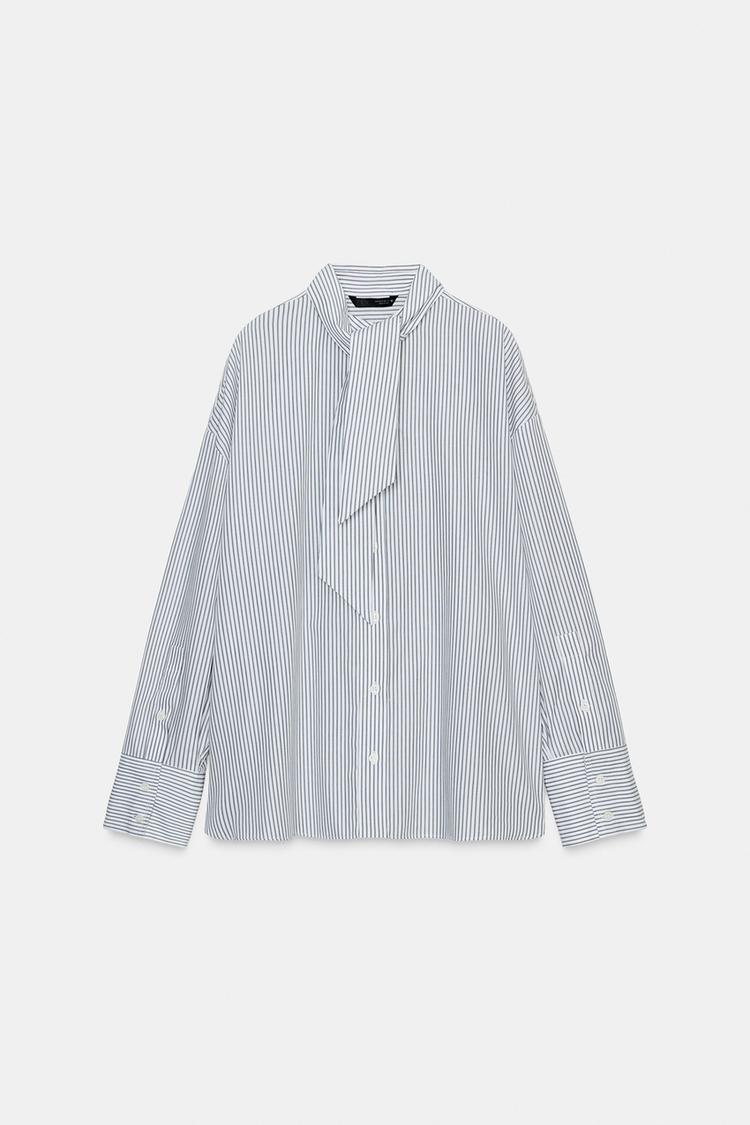 ZARA РУБАШКА ИЗ ПОПЛИНА В ПОЛОСКУ С ШАРФОМ, БЛЫЙ/ЗЕЛЕНЫЙ