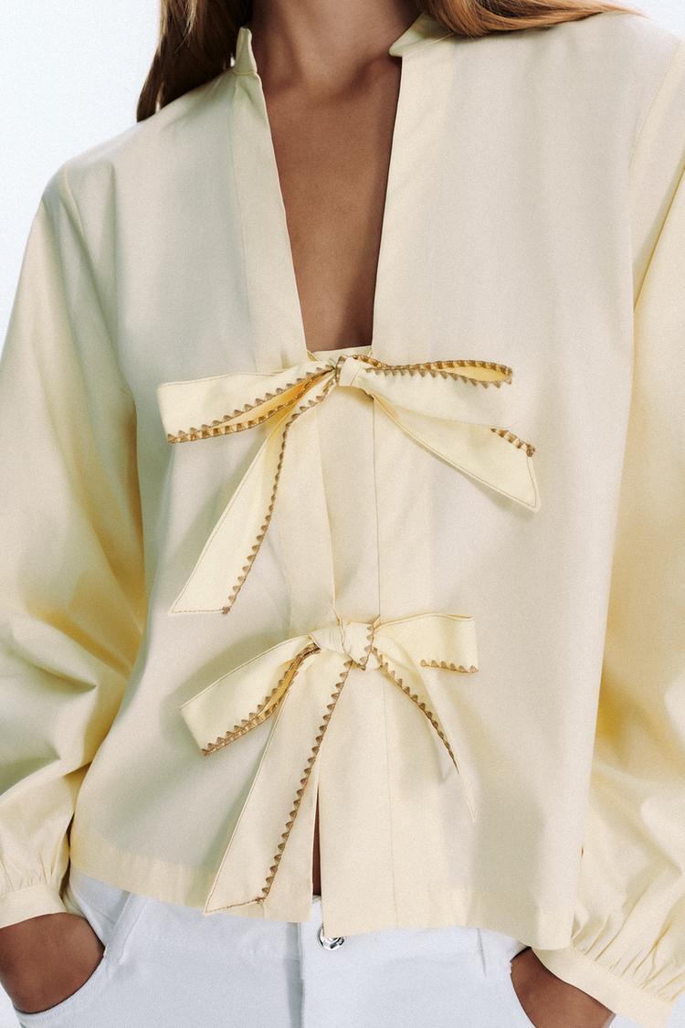 ZARA РУБАШКА ИЗ ПОПЛИНА В ПОЛОСКУ С ЗАВЯЗКАМИ, ЖЕЛТЫЙ