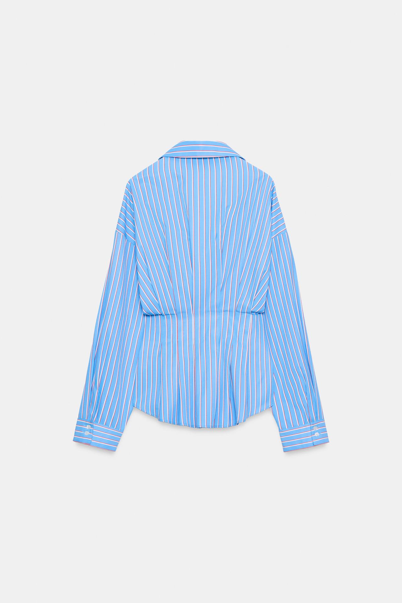 ZARA РУБАШКА ИЗ ПОПЛИНА В ПОЛОСКУ СО СКЛАДКАМИ, КРАСНАЯ ПОЛОСКА