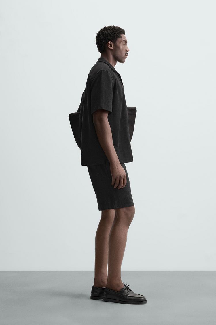 ZARА РУБАШКА ИЗ РЕЛЬЕФНОЙ ТКАНИ, ЧЕРНЫЙ