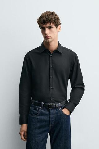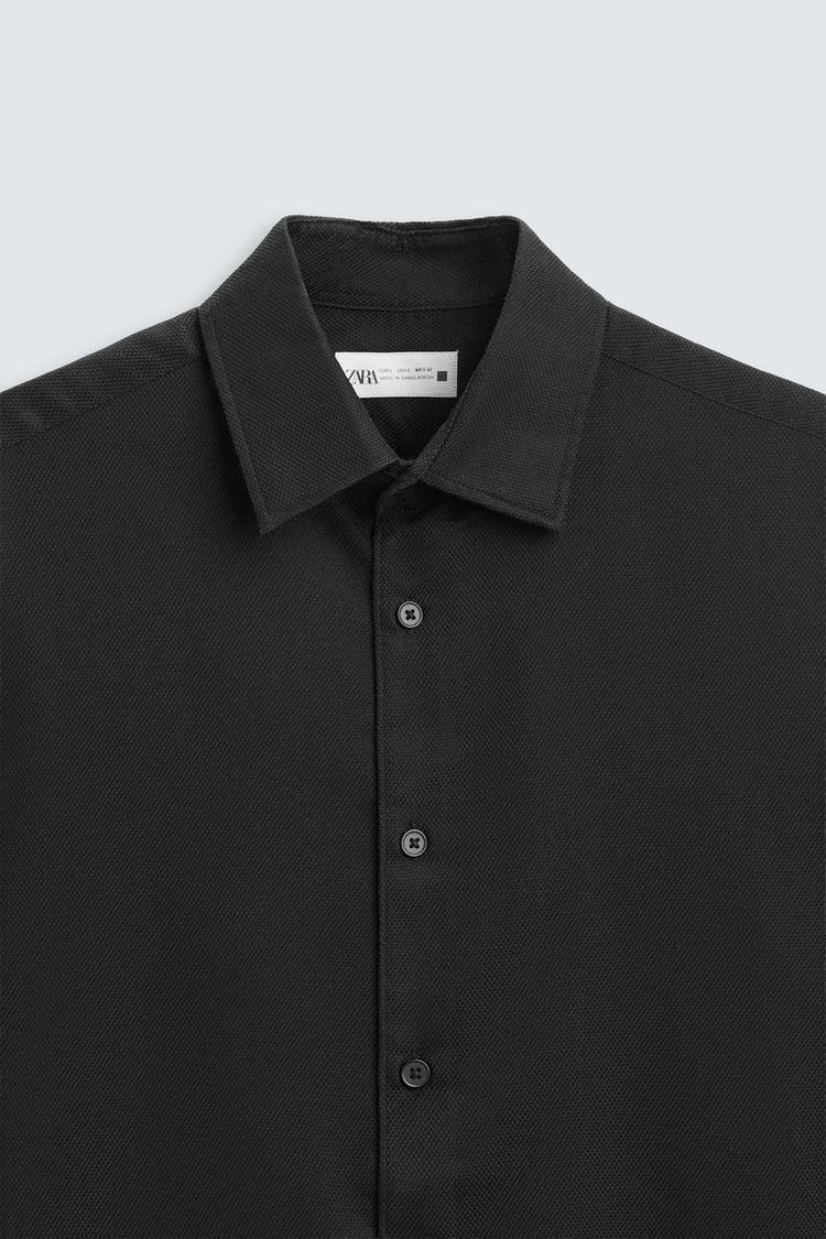 ZARA РУБАШКА ИЗ РЕЛЬЕФНОЙ ТКАНИ EASY CARE, ЧЕРНЫЙ