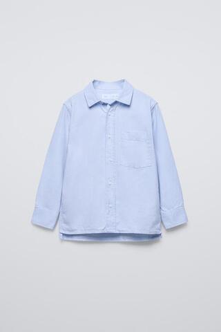 ZARA РУБАШКА ИЗ РЕЛЬЕФНОЙ ТКАНИ С КАРМАНОМ, НЕБЕСНО-ГОЛУБОЙ