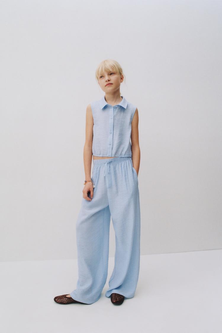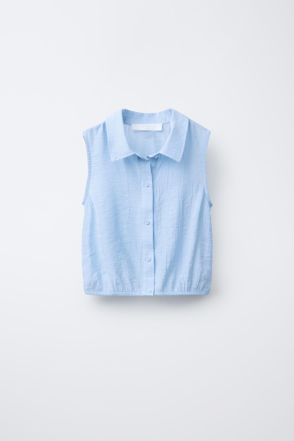 ZARA РУБАШКА ИЗ РЕЛЬЕФНОЙ ТКАНИ, СИНИЙ