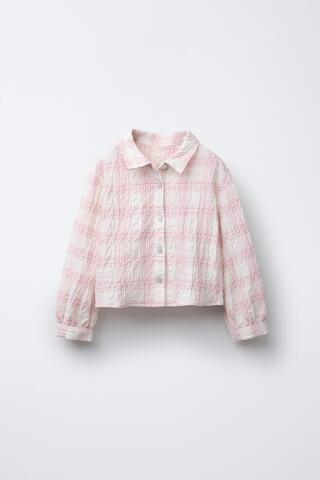 ZARA РУБАШКА ИЗ РЕЛЬЕФНОЙ ТКАНИ В КЛЕТКУ, ЭКРЮ
