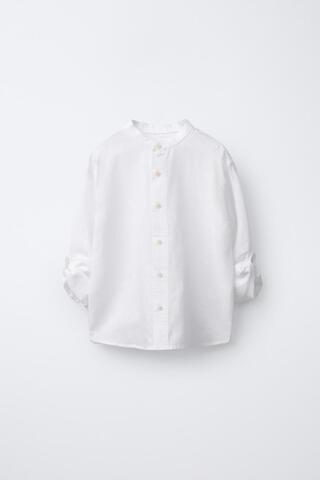 ZARA РУБАШКА ИЗ СМЕСОВОГО ЛЬНА, БЕЛЫЙ