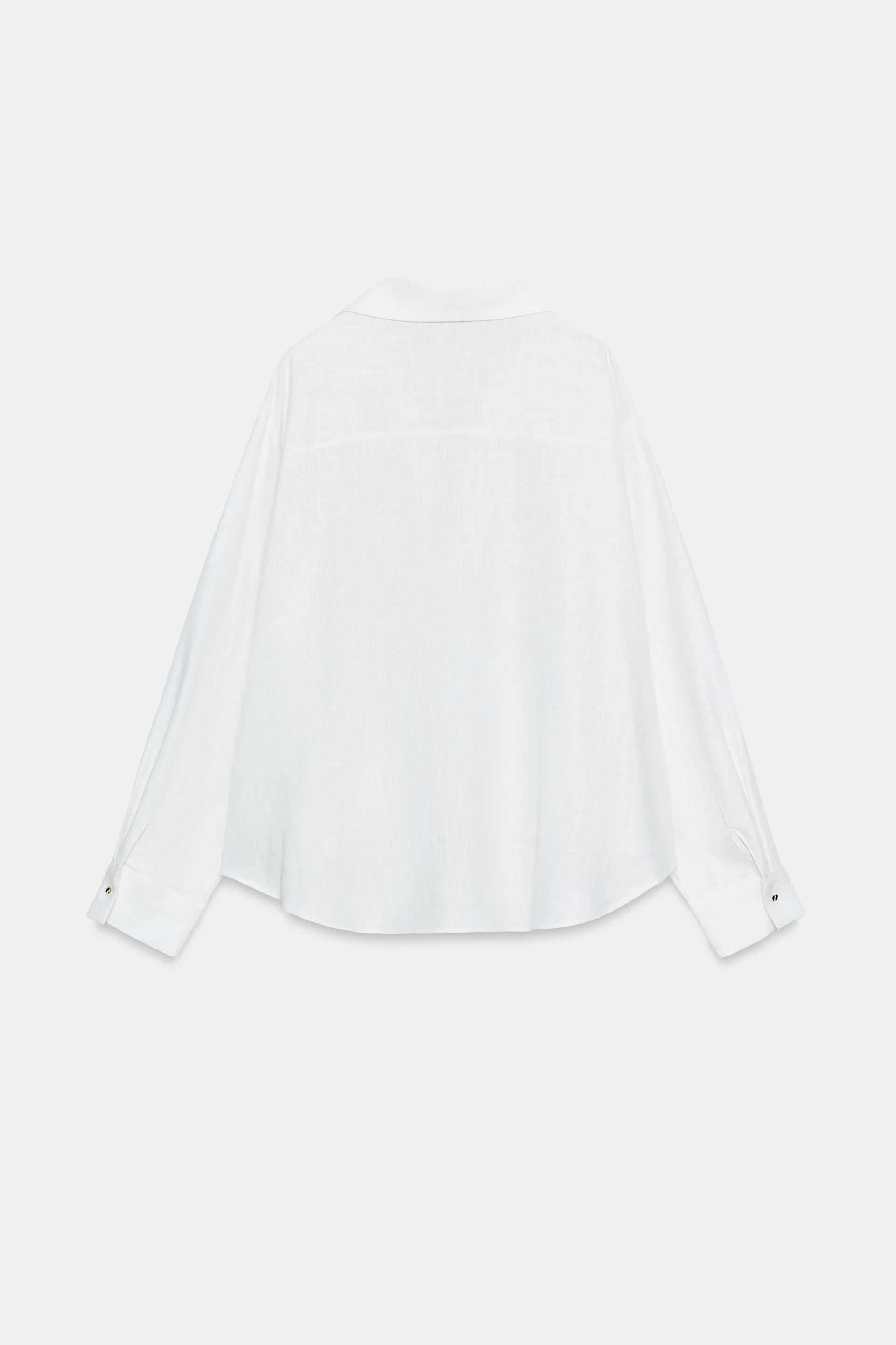 ZARA РУБАШКА ИЗ СМЕСОВОГО ЛЬНА С ОБЪЕМНЫМ НИЗОМ, БЕЛЫЙ