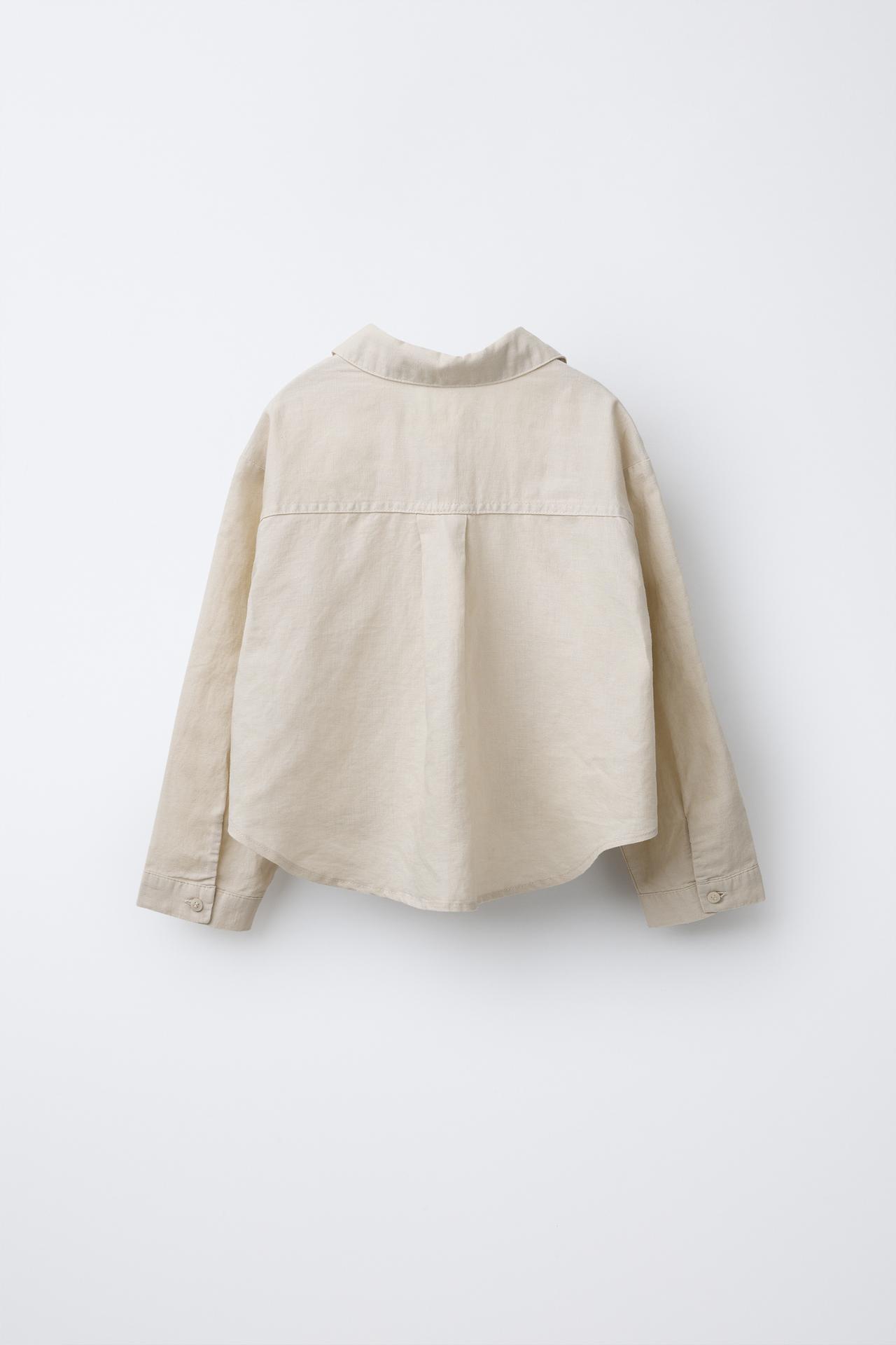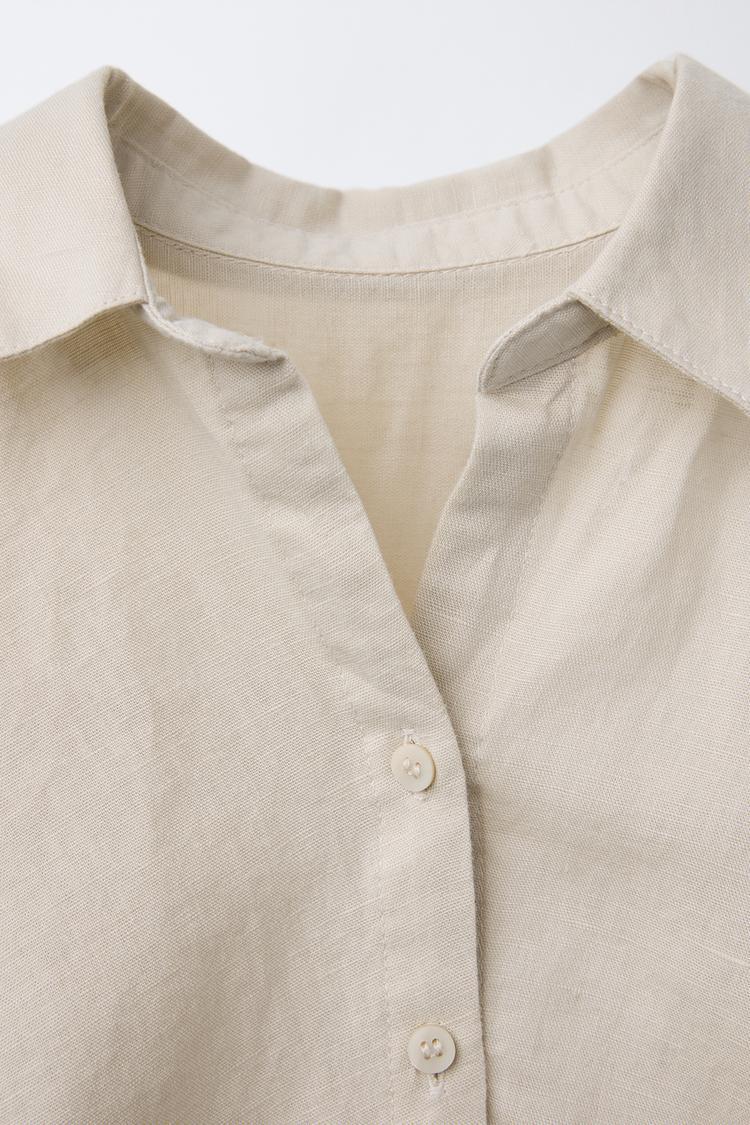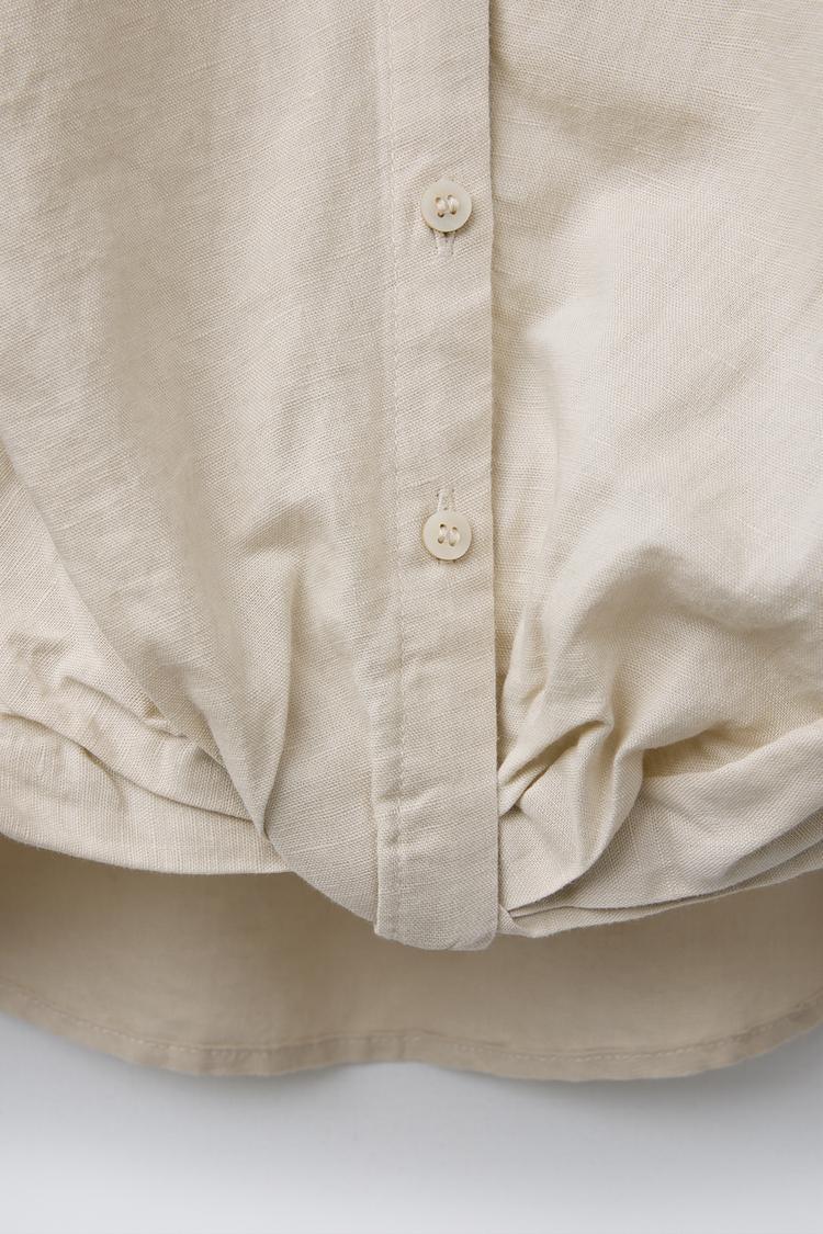 ZARA РУБАШКА ИЗ СМЕСОВОГО ЛЬНА СО СБОРКАМИ, ПЕСОЧНЫЙ