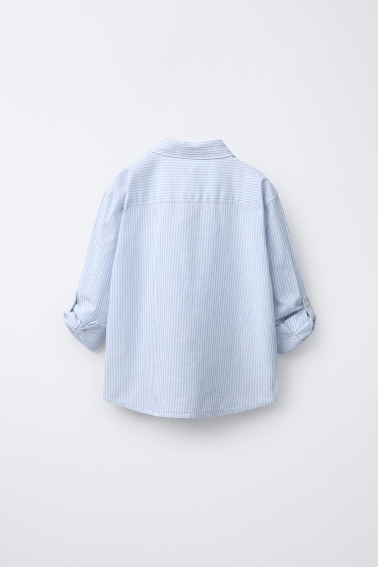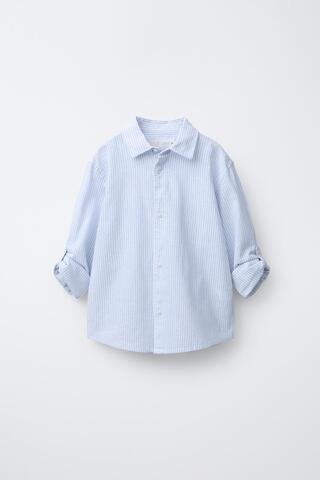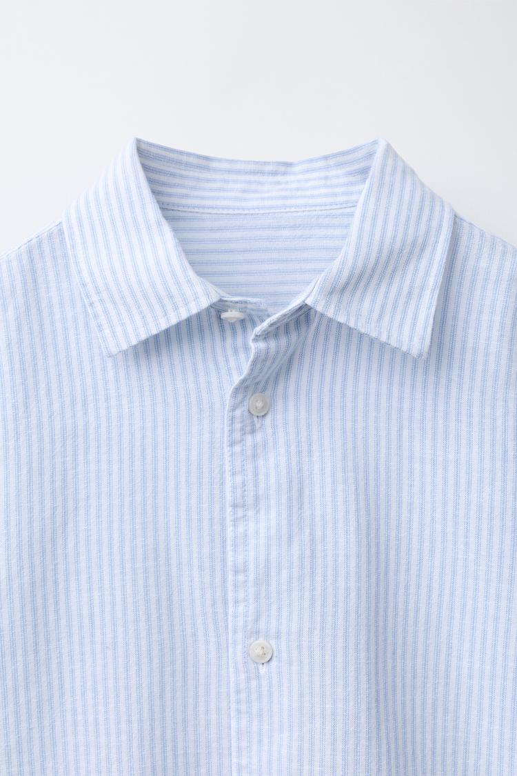 ZARA РУБАШКА ИЗ СМЕСОВОГО ЛЬНА В ПОЛОСКУ, СИНИЙ