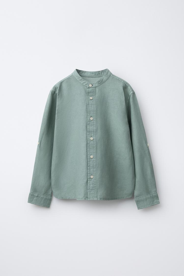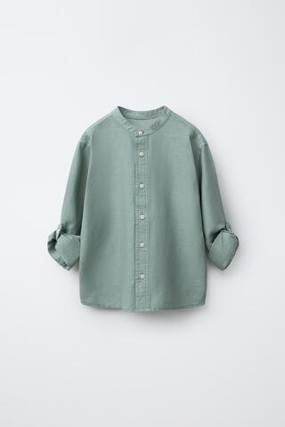 ZARA РУБАШКА ИЗ СМЕСОВОГО ЛЬНА, ЗЕЛЕНЫЙ