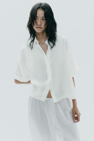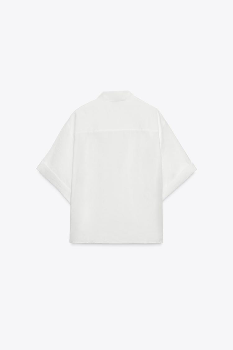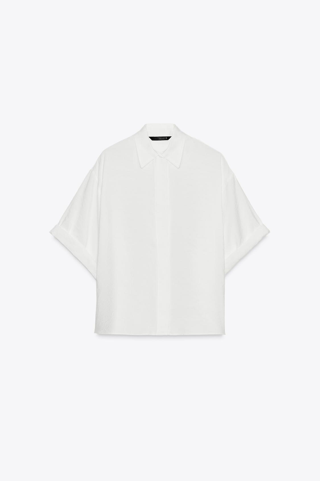 ZARA РУБАШКА ИЗ СТРУЯЩЕЙСЯ ТКАНИ С КОРОТКИМИ РУКАВАМИ, ЭКРЮ