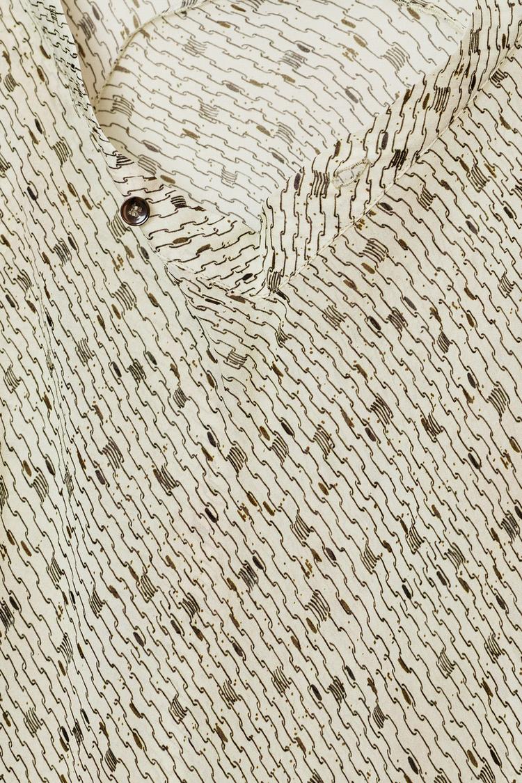 Рубашка из вискозы. V-образный вырез, длинные рукава с регулируемыми манжетами на завязках. Асимметричный низ.
