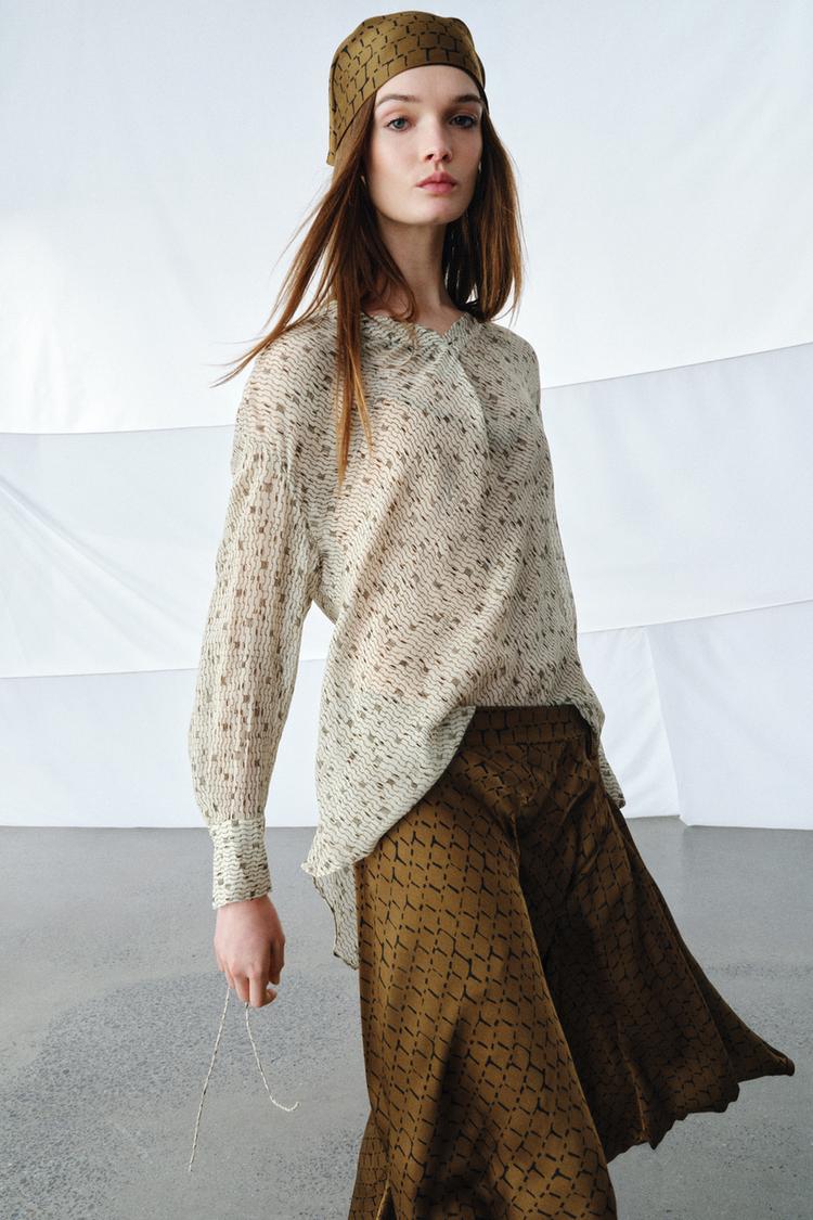 ZARA РУБАШКА ИЗ СТРУЯЩЕЙСЯ ТКАНИ С ПРИНТОМ — ZW COLLECTION, РАЗНОЦВЕТНЫЙ