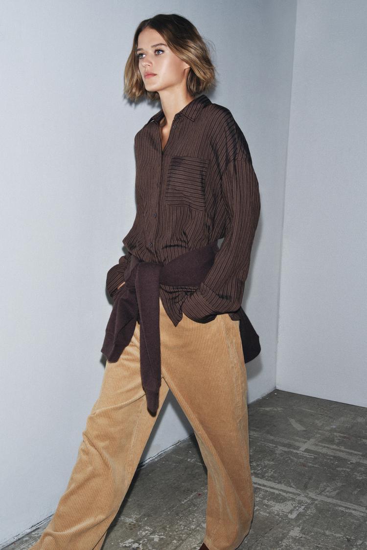 ZARA РУБАШКА ИЗ СТРУЯЩЕЙСЯ ТКАНИ В ПОЛОСКУ — ZW COLLECTION, КОРИЧНЕВЫЙ