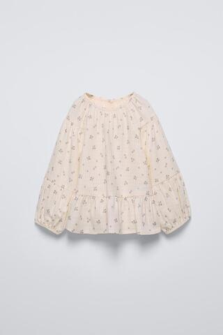 ZARA РУБАШКА ИЗ ТКАНИ С ЦВЕТОЧНЫМ ПРИНТОМ, ЭКРЮ