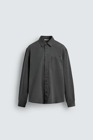 ZARA РУБАШКА ИЗ ТВИЛА, АНТРАЦИТОВО-СЕРЫЙ