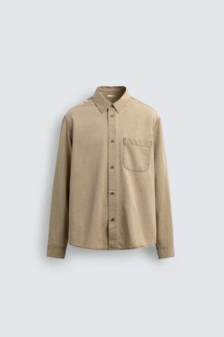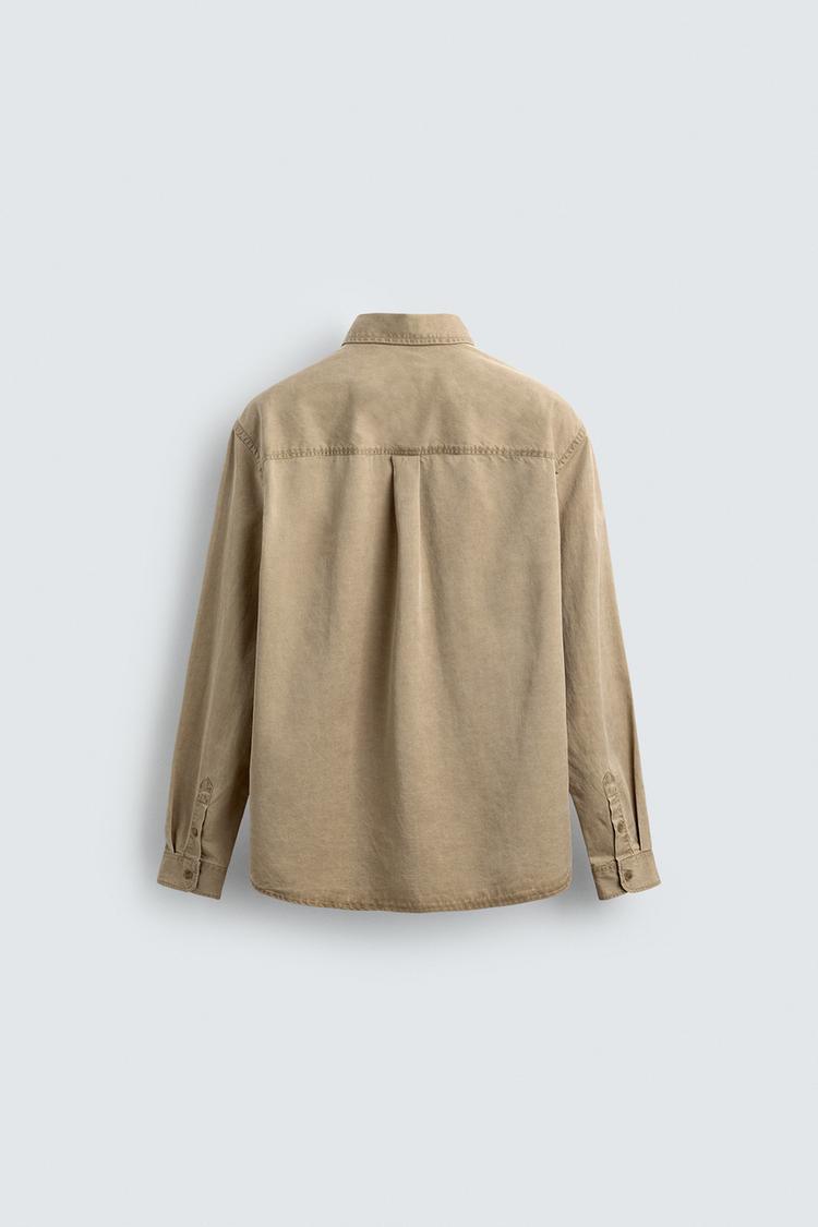 ZARA РУБАШКА ИЗ ТВИЛА, РЫЖЕВАТО-КОРИЧНЕВЫЙ