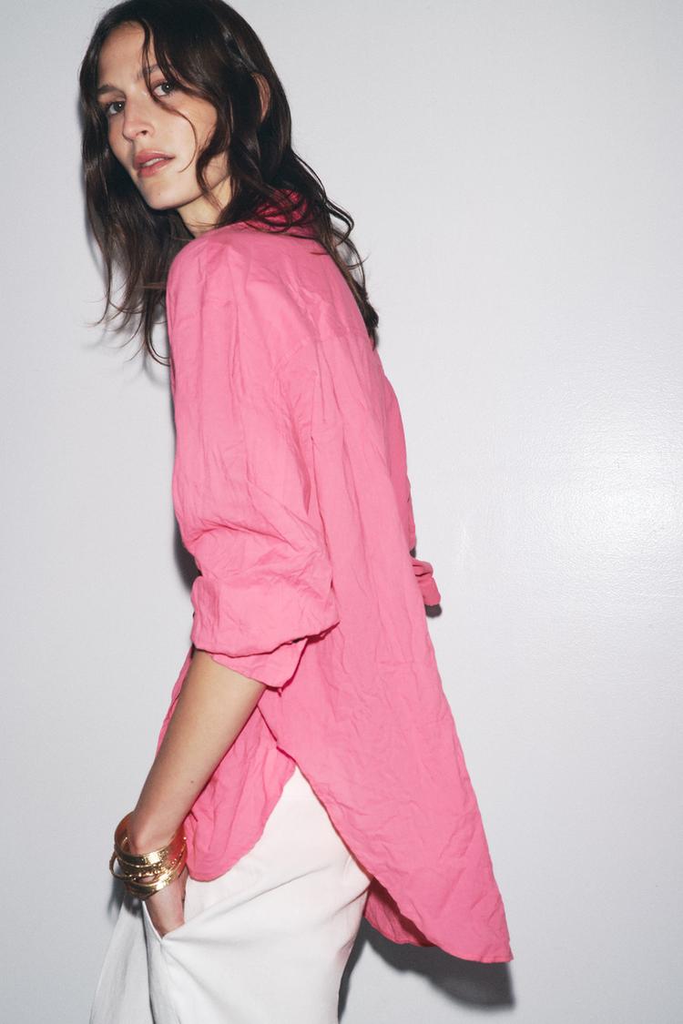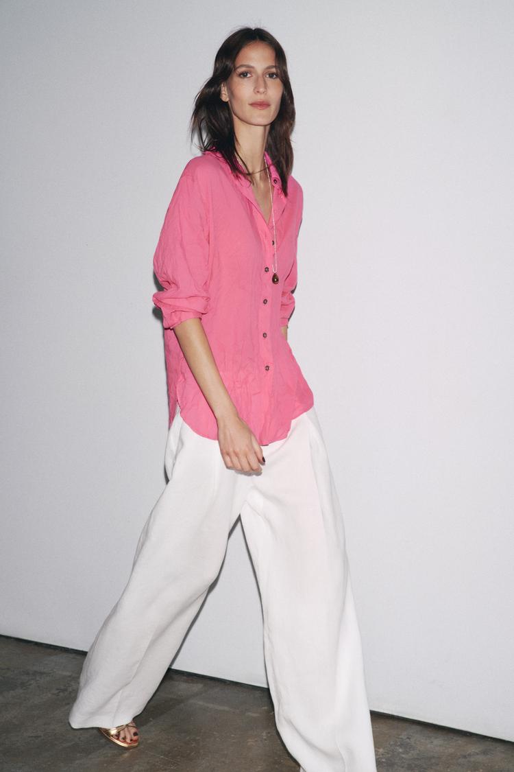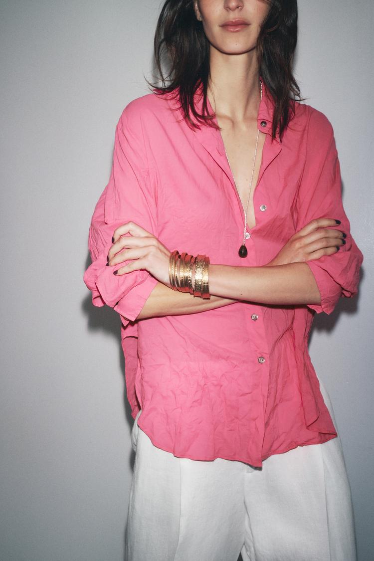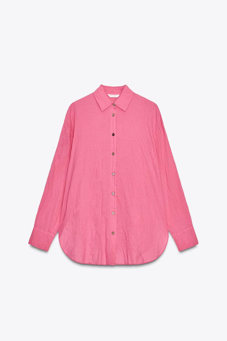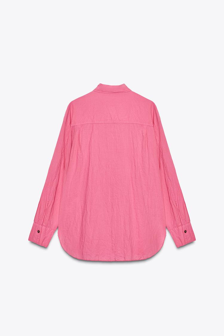 ZARA РУБАШКА ИЗ ЖАТОЙ ТКАНИ С ПУГОВИЦАМИ — ZW COLLECTION, ЦВЕТ ФУКСИИ