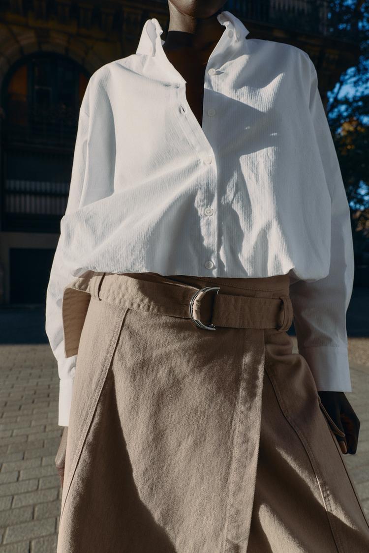 ZARA РУБАШКА ИЗПОПЛИНА, ЖЕЛТОВАТО-БЕЛЫЙ