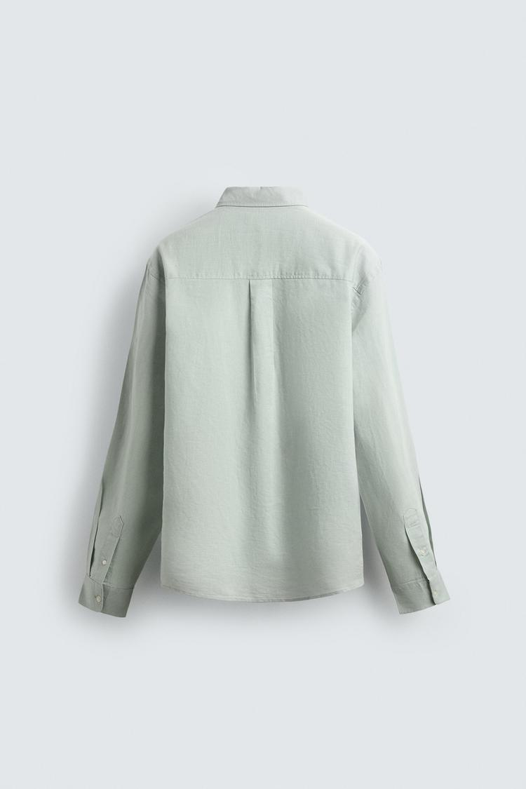 ZARA РУБАШКА КЛАССИЧЕСКОГО КРОЯ ИЗ ЛЬНА И ХЛОПКА, ВОДЯНИСТО-ЗЕЛЕНЫЙ