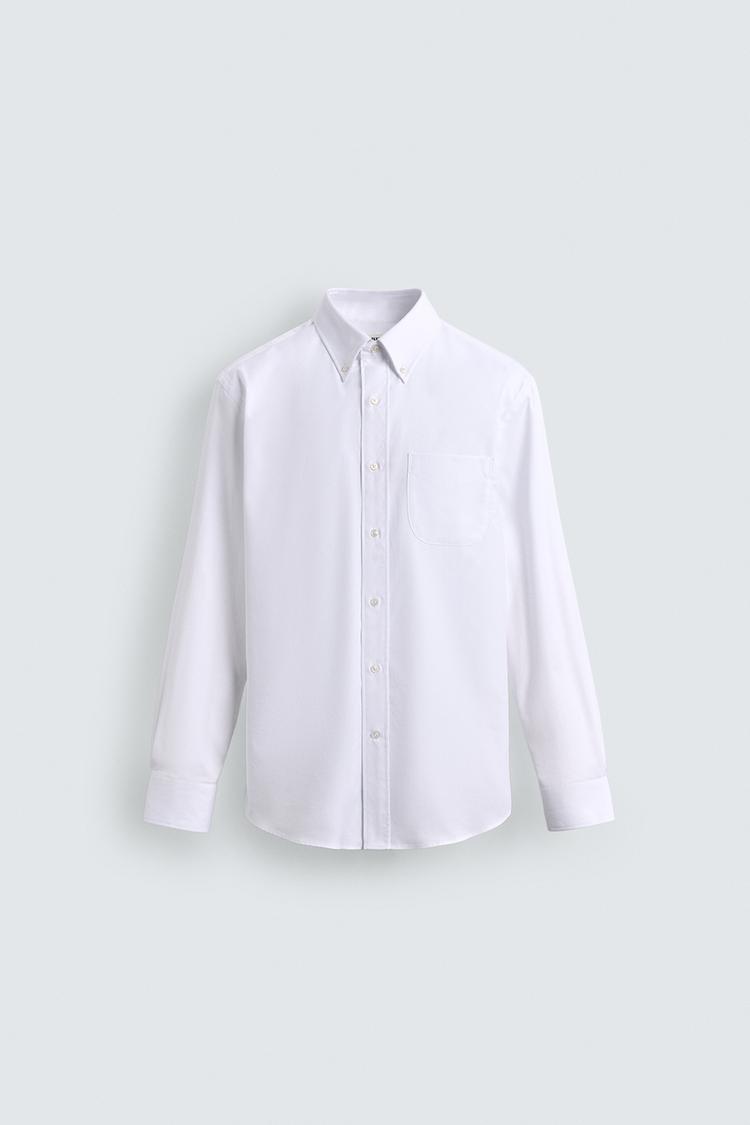 ZARA РУБАШКА КЛАССИЧЕСКОГО КРОЯ С ВОРОТНИКОМ НА ПУГОВИЦАХ, БЕЛЫЙ