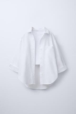 ZARA РУБАШКА ОКСФОРД И ФУТБОЛКА В РУБЧИК, БЕЛЫЙ