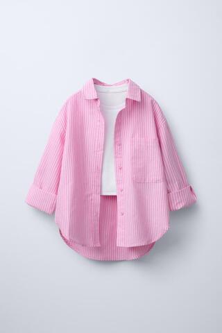 ZARA РУБАШКА ОКСФОРД И ФУТБОЛКА В РУБЧИК, РОЗОВЫЙ/БЕЛЫЙ