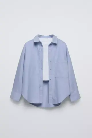 ZARA РУБАШКА ОКСФОРД И ТОП В РУБЧИК, ГОЛУБОЙ